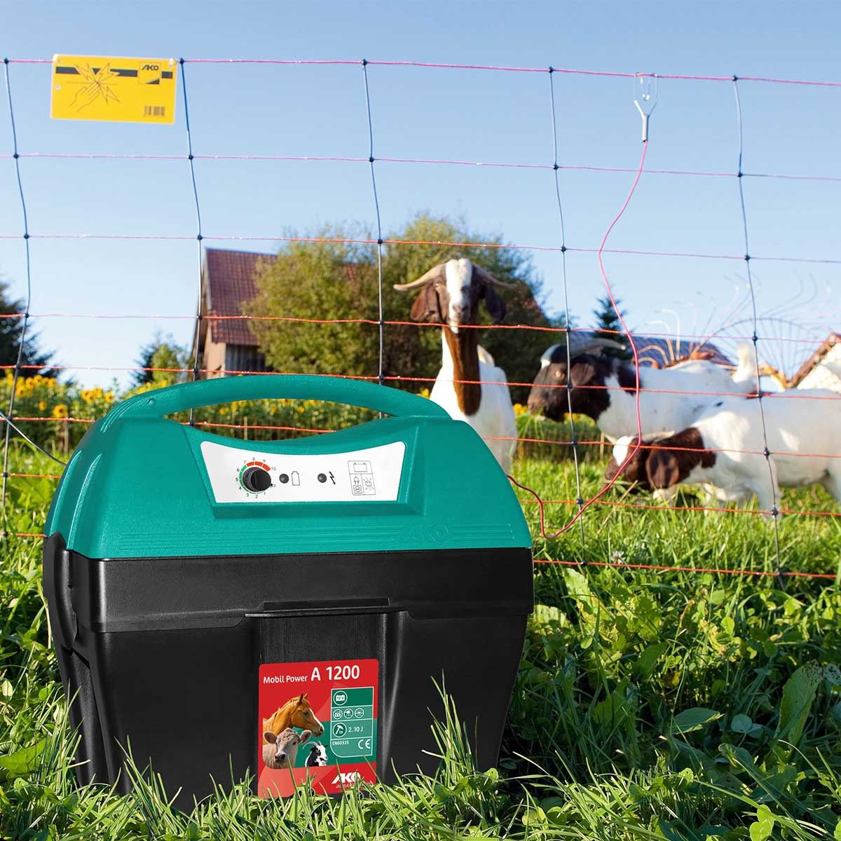L'électrificateur Mobil Power A 1200 est un appareil universel, très puissant, alimenté par une batterie de 12 Volts pour une utilisation mobile.