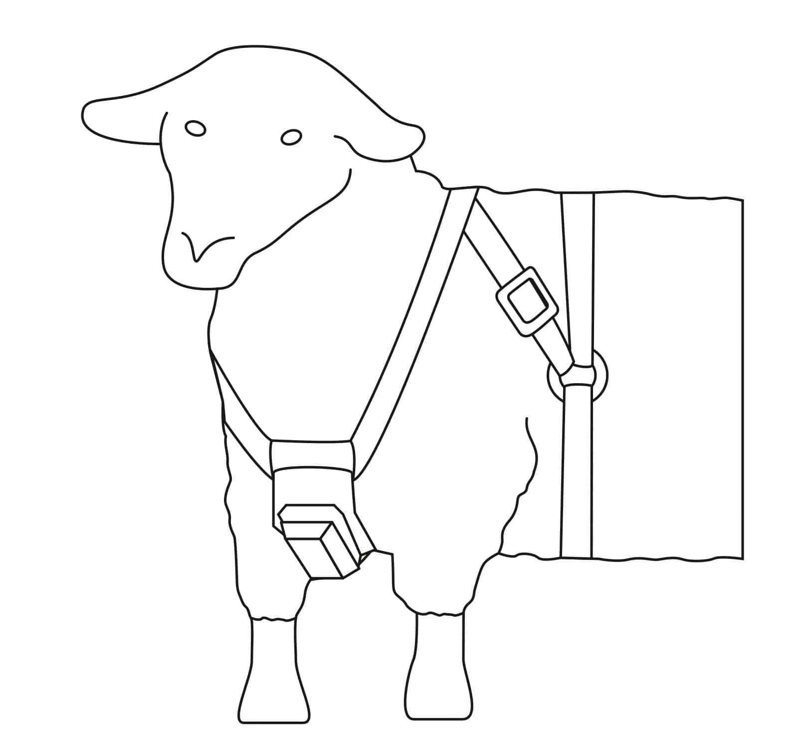 The Ram Harness made out of Nylon is an essential tool in sheep breeding, specifically designed for the color marking of ewes during mating. It is securely strapped to the chest of the ram and fixed around the belly of the sheep with a strap, ensuring it sits stably. The wax color block, available separately, leaves a clear marking on the backs of the ewes during mating, allowing the breeder to accurately determine the lambing time.