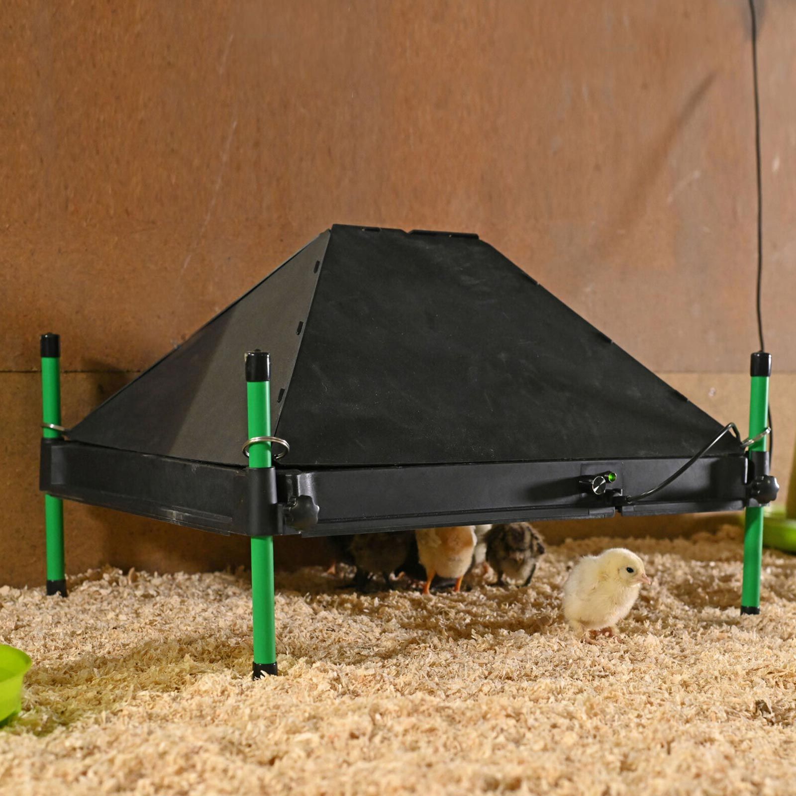 Le couvercle de protection peut être facilement monté sur la plaque chauffante et empêche les poussins de se percher. En essayant de sauter sur la plaque, ils glissent et la plaque chauffante reste propre.