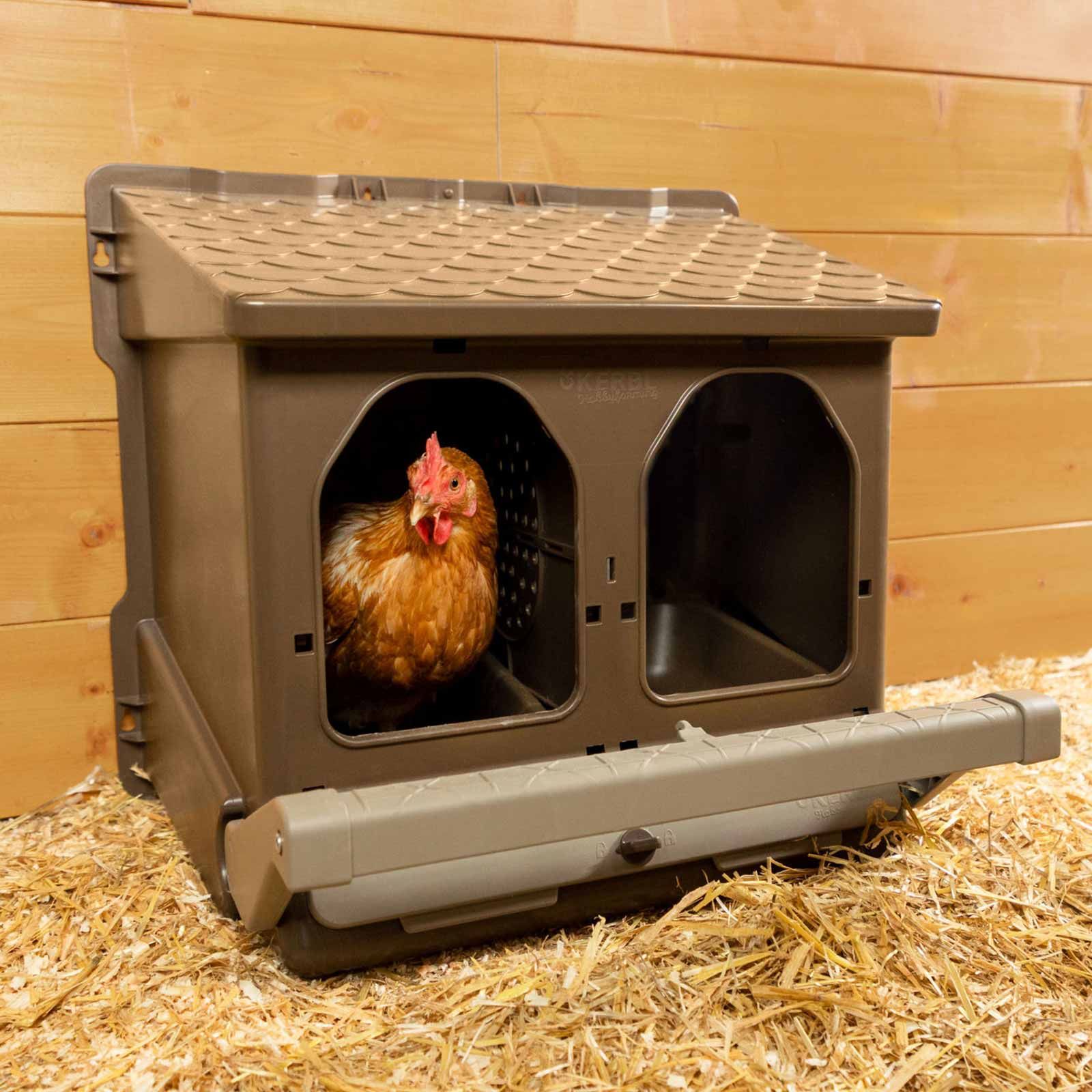 Le double nid innovant pour poules en plastique recyclé de haute qualité offre à vos poules un environnement propre et confortable pour pondre leurs œufs, qui répond parfaitement à leurs besoins naturels.