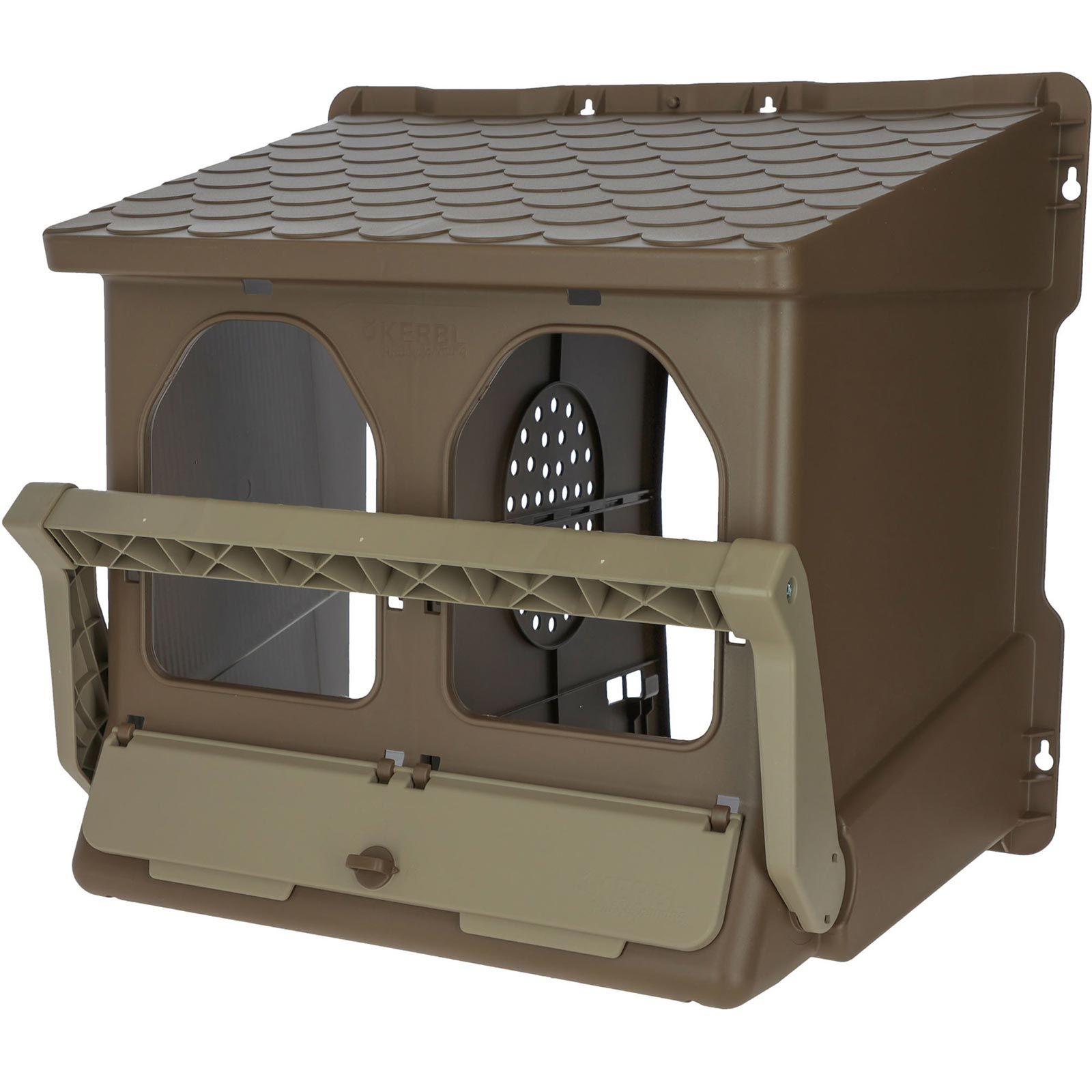 Le double nid de ponte peut être facilement suspendu ou placé contre un mur du poulailler, selon vos préférences et vos besoins. Un perchoir pratique facilite l'accès des poules, tandis que le perchoir rabattable permet de fermer la porte d'entrée en toute sécurité la nuit et d'éloigner les hôtes indésirables.