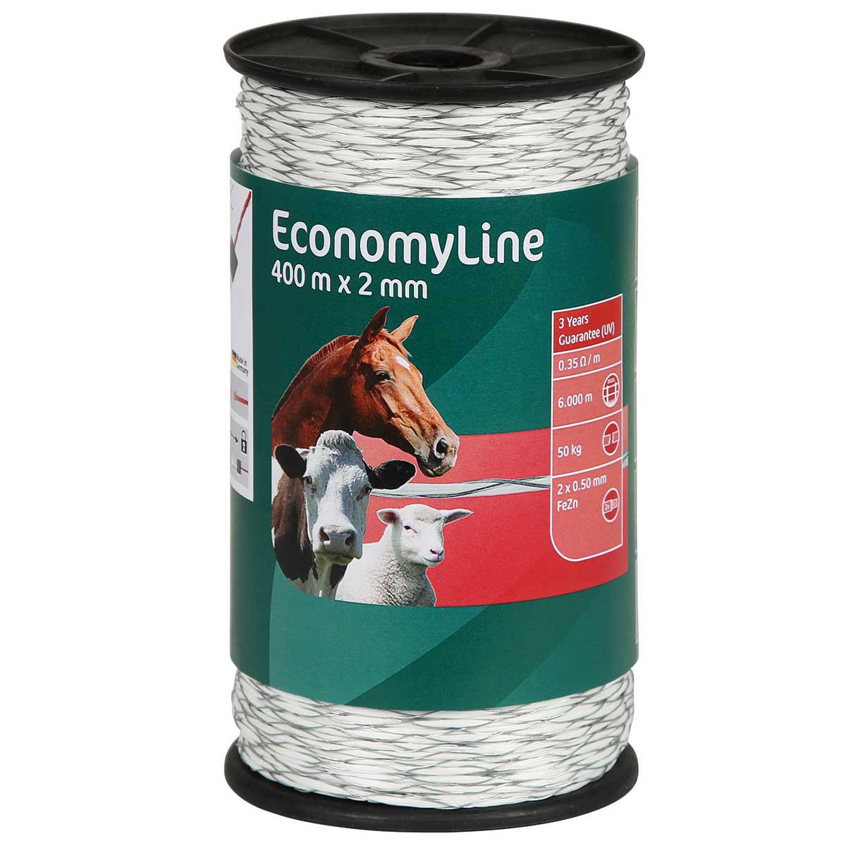 1x Fil de clôture électrique AKO EconomyLine toronné 400 m, 2x0.50 FeZn, blanc