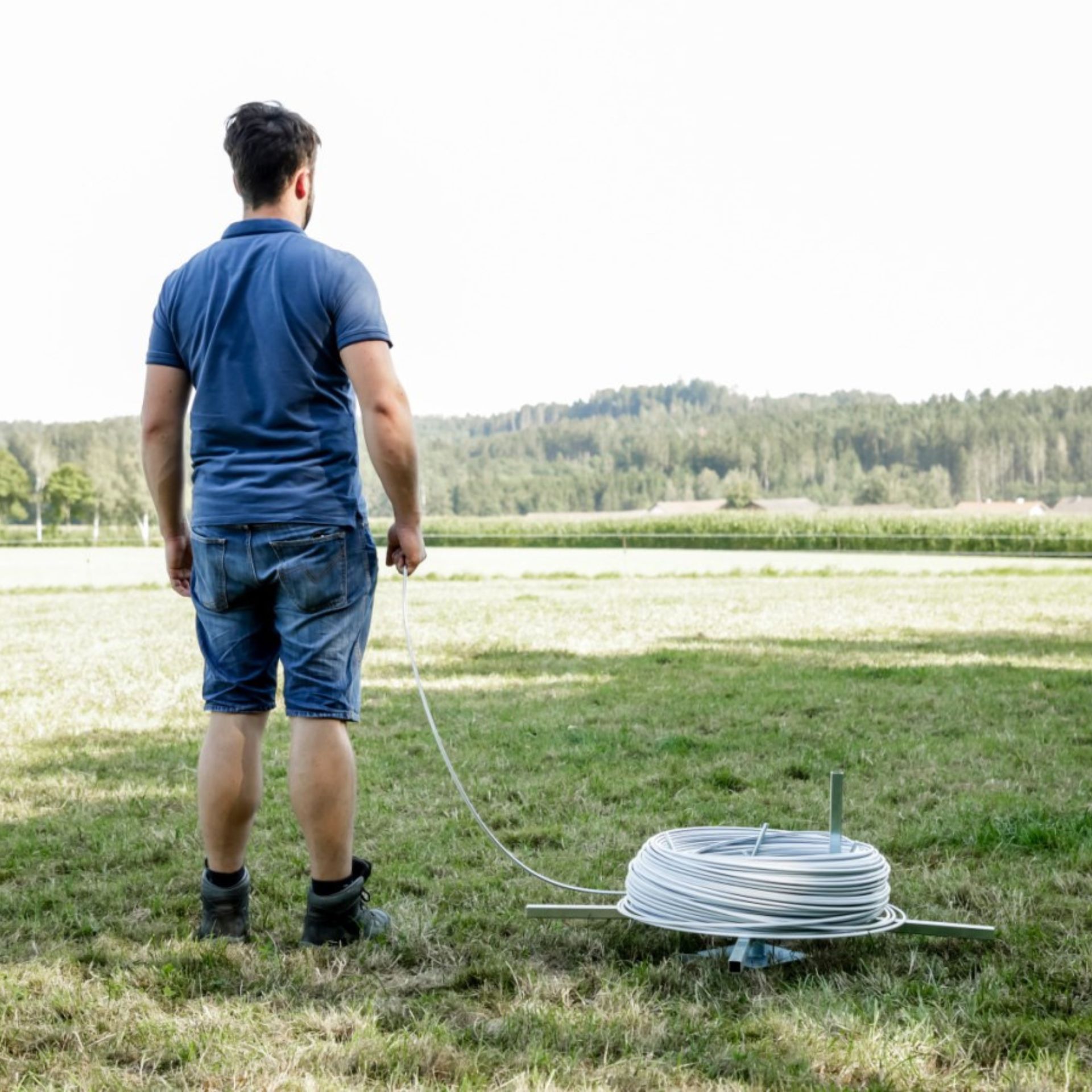 Un autre avantage est la plaque de base supplémentaire qui empêche l'enfoncement dans les sols meubles. Ainsi, le dérouleur reste stable, même sur les prairies, les champs ou les sols humides. Il est particulièrement adapté à ceux qui installent ou réparent régulièrement des clôtures et qui attachent de l'importance à un travail propre, à la sécurité et à la flexibilité.