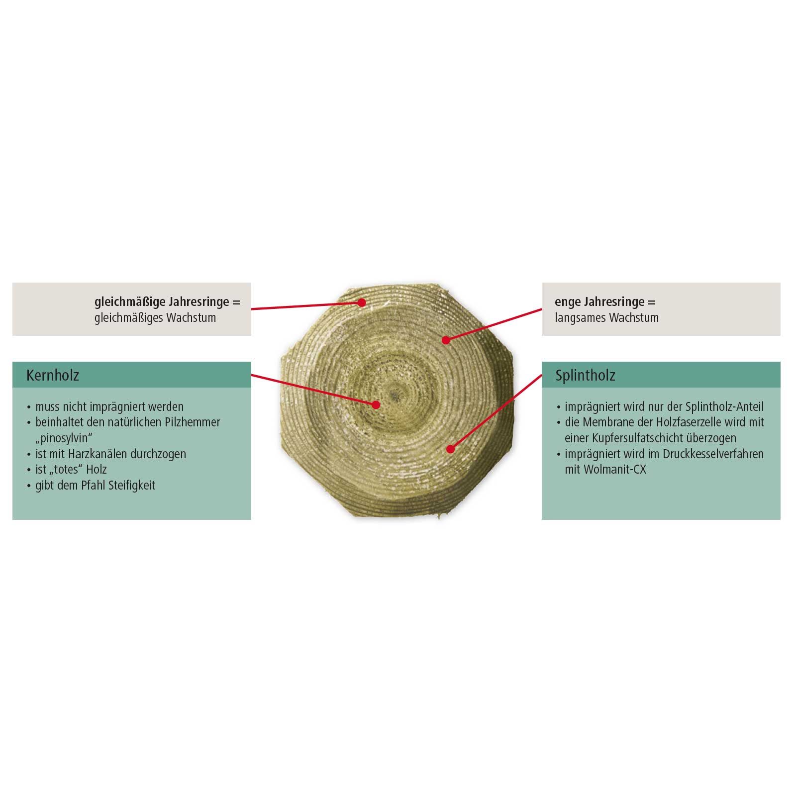 Le poteau Octowood avec son profil octogonal ingénieux est fabriqué en Pinius Silvestris = bois de pin.