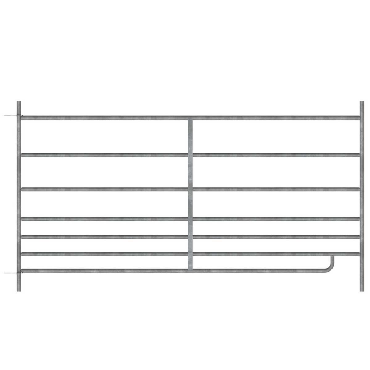 Les barrières d'herbage à insertion constituent une solution rapide et efficace de clôture mobile pour les animaux. Le système pratique des barrières d'insertion permet une installation simple sans outil. L'utilisation de ces panneaux de pâturage est idéale pour la mise en place d'une pré-récolte, d'un battage, de stalles simples ou multiples ou de séparateurs. Les barrières d'insertion sont équipées de 7 tubes transversaux avec un espacement croissant de bas en haut, avec des diamètres de tube de 25,0 ou 21,3 mm. Les barrières sont entièrement galvanisées à chaud pour assurer leur stabilité et leur solidité. La hauteur à partir du sol est de 92 centimètres. Dans la version avec porte, un crochet de verrouillage est inclus et le cadre est renforcé, garantissant aux animaux une largeur de passage de 57 centimètres. Une version avec deux passages pour les agneaux en position centrale avec une largeur réglable (17,5 cm / 24,5 cm) est également disponible.
