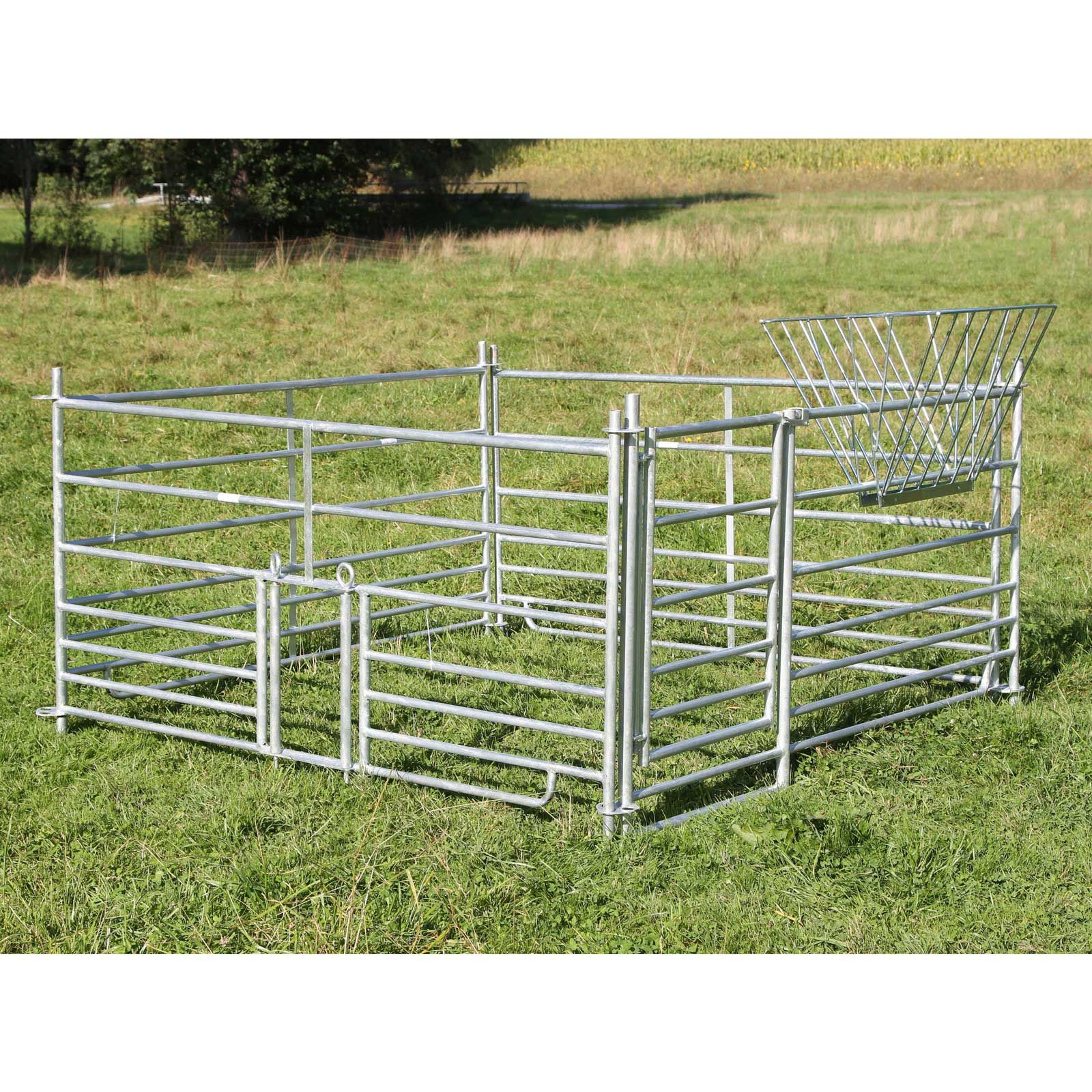 Les barrières d'herbage à insertion constituent une solution rapide et efficace de clôture mobile pour les animaux. Le système pratique des barrières d'insertion permet une installation simple sans outil. L'utilisation de ces panneaux de pâturage est idéale pour la mise en place d'une pré-récolte, d'un battage, de stalles simples ou multiples ou de séparateurs. Les barrières d'insertion sont équipées de 7 tubes transversaux avec un espacement croissant de bas en haut, avec des diamètres de tube de 25,0 ou 21,3 mm. Les barrières sont entièrement galvanisées à chaud pour assurer leur stabilité et leur solidité. La hauteur à partir du sol est de 92 centimètres. Dans la version avec porte, un crochet de verrouillage est inclus et le cadre est renforcé, garantissant aux animaux une largeur de passage de 57 centimètres. Une version avec deux passages pour les agneaux en position centrale avec une largeur réglable (17,5 cm / 24,5 cm) est également disponible.