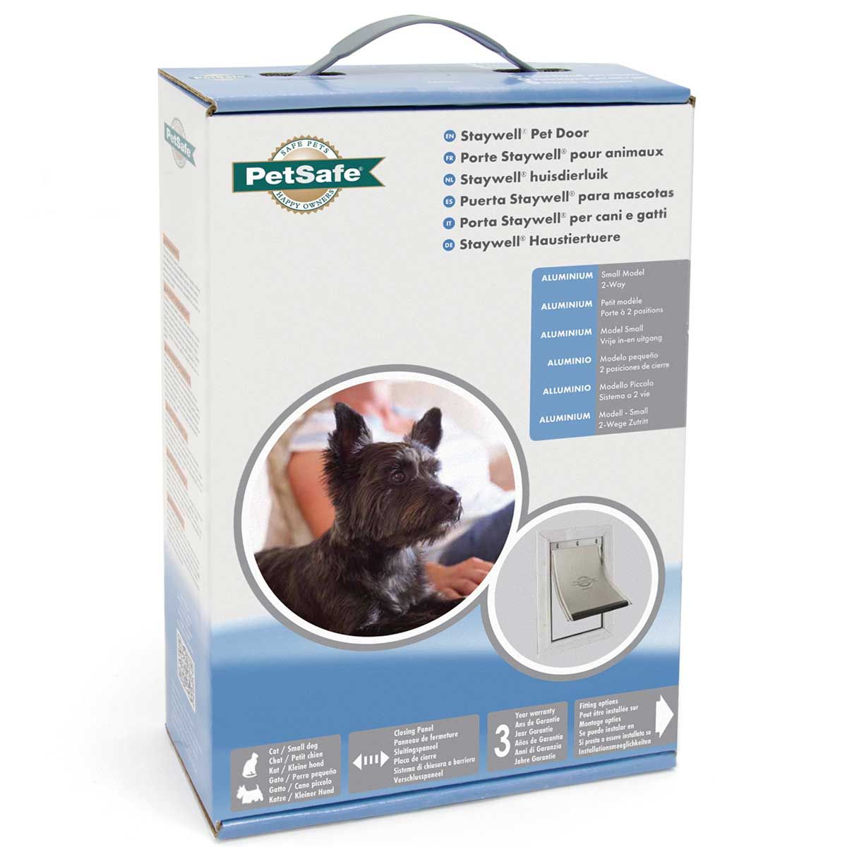 Porte pour chien originale staywell 600 avec volet fixe transparent, porte verrouillable de l'intérieur, joint magnétique, instructions de montage incluses, vis incluses.
