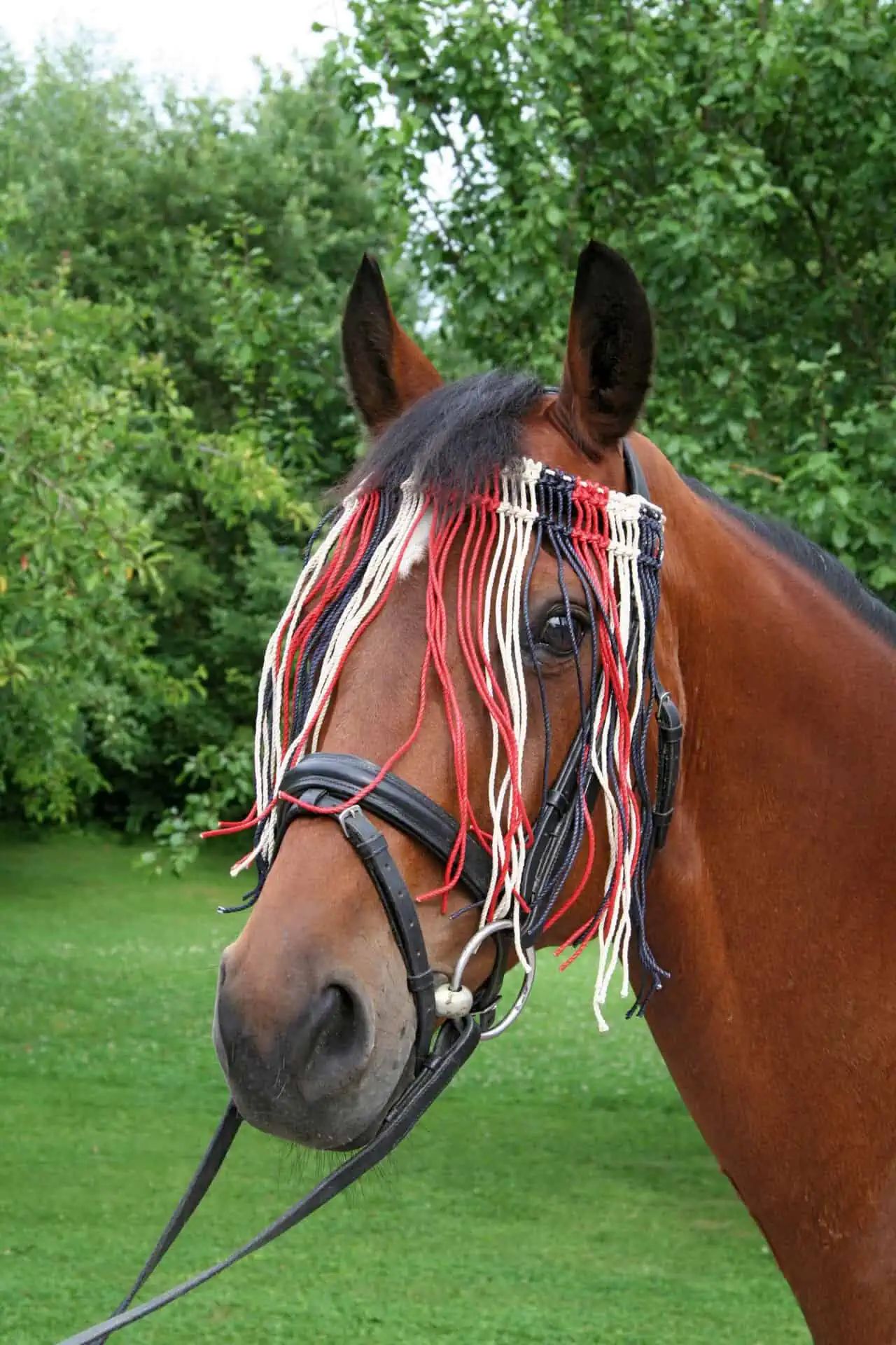 Choisissez la Frange pour poney pour une protection élégante et efficace contre les mouches. Votre poney vous en sera reconnaissant. Veuillez noter que la cavezza n'est pas incluse dans la livraison.