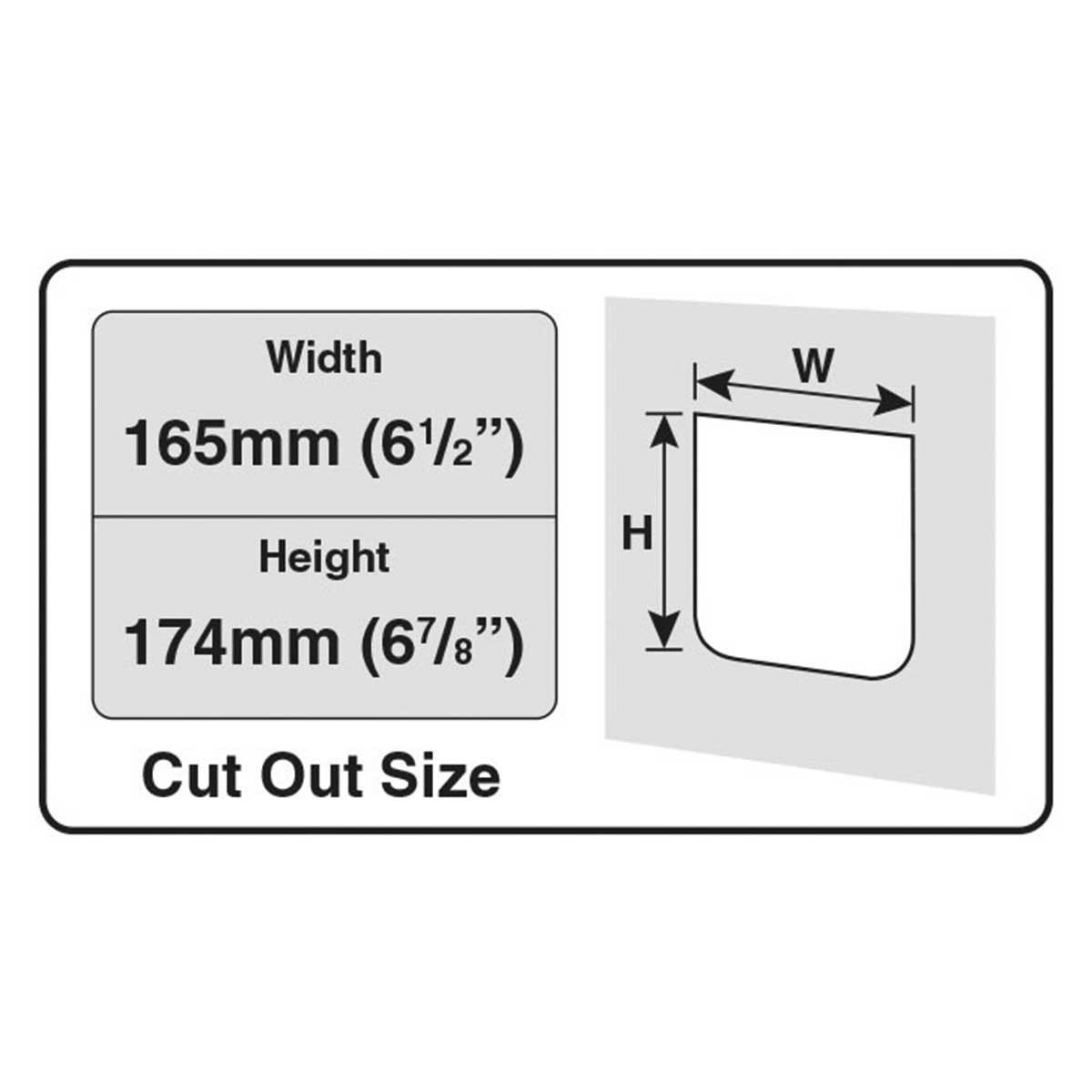 Dimensions de la découpe (l x H) : 165 x 174 mm