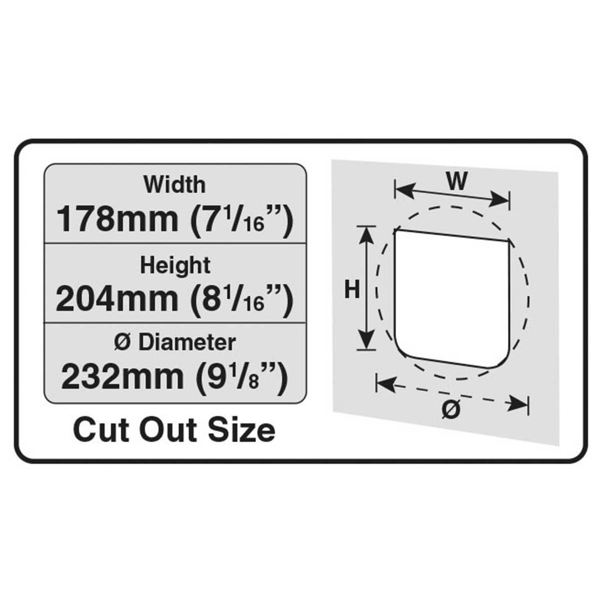Dimensions de la découpe (LxH) : 178 x 204 mm (dm : 232 mm)