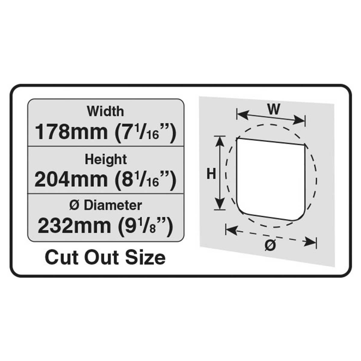 Dimensions de la découpe (l x H) : 178 x 204 mm (dm : 232 mm)