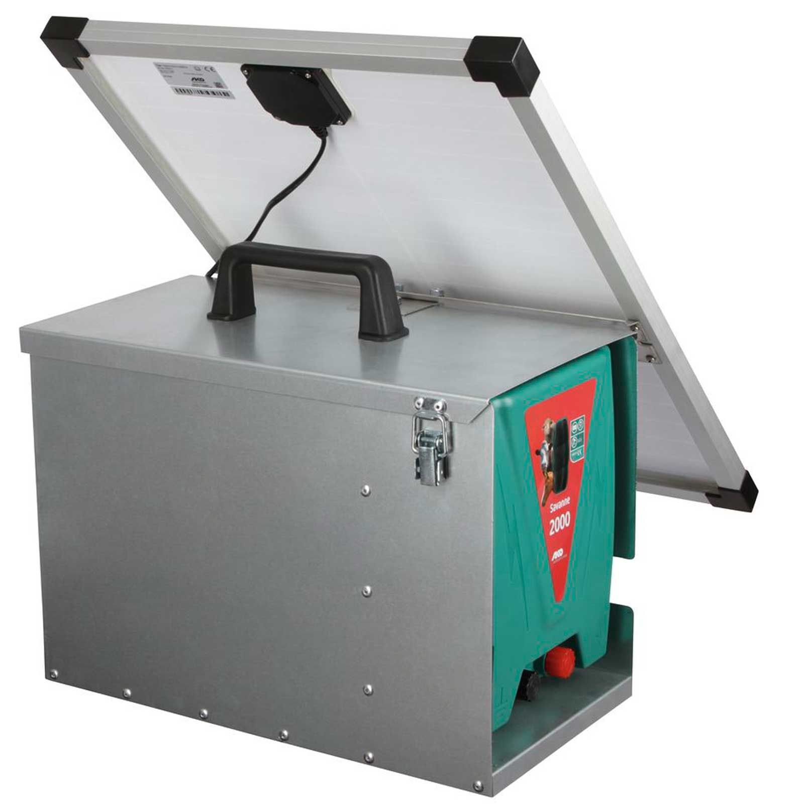 L'électrificateur Savanne 3000 est livré avec un boîtier métallique assortie et est également disponible comme kit de démarrage avec ou sans module solaire. L'appareil à batterie est idéal pour les longues installations de clôture avec une végétation dense ainsi que pour les chevaux, les vaches laitières, les moutons, les chèvres, les étangs de poissons et la volaille. Le voyant de contrôle de la clôture et l'indicateur d'alerte séparé de la batterie fournissent toujours des informations sur l'état du système de clôture.