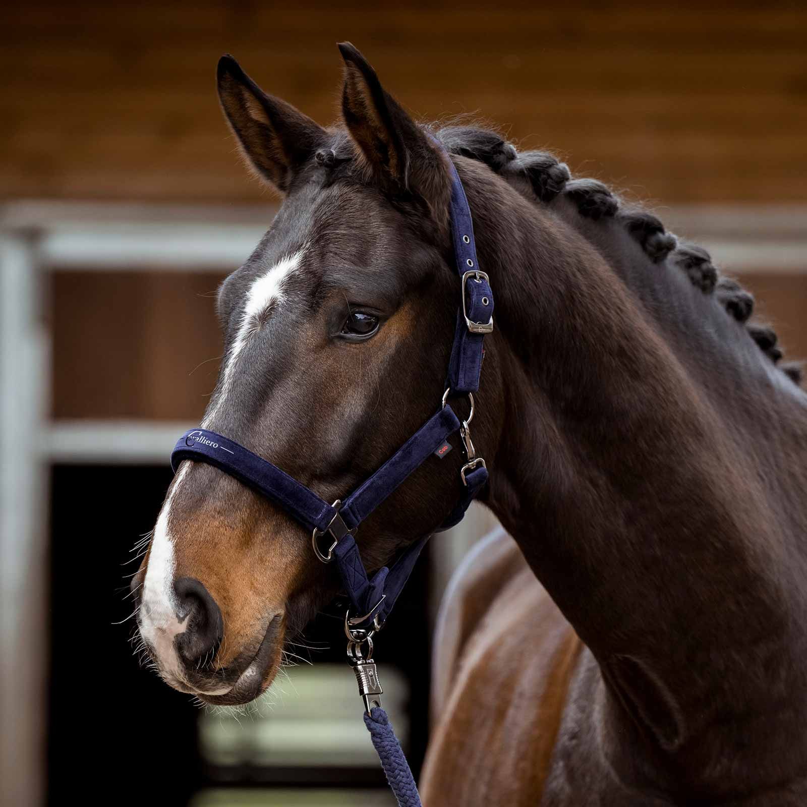 La nouvelle collection automne-hiver de Covalliero présente un licol Covalliero exclusif en bleu marine. Ce licol offre un confort maximal, un design élégant et une fonctionnalité pour votre cheval.