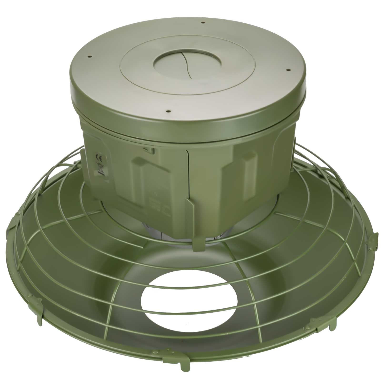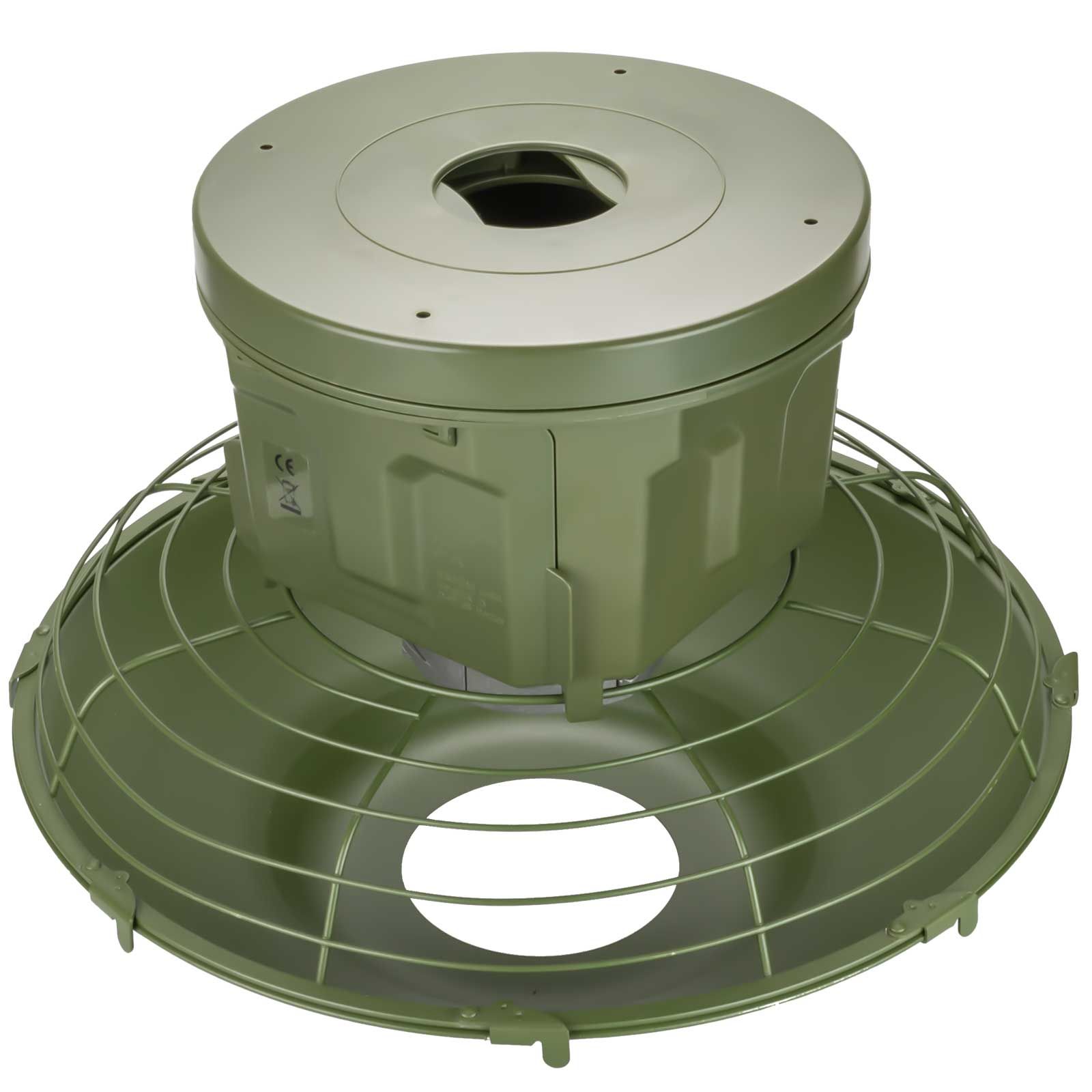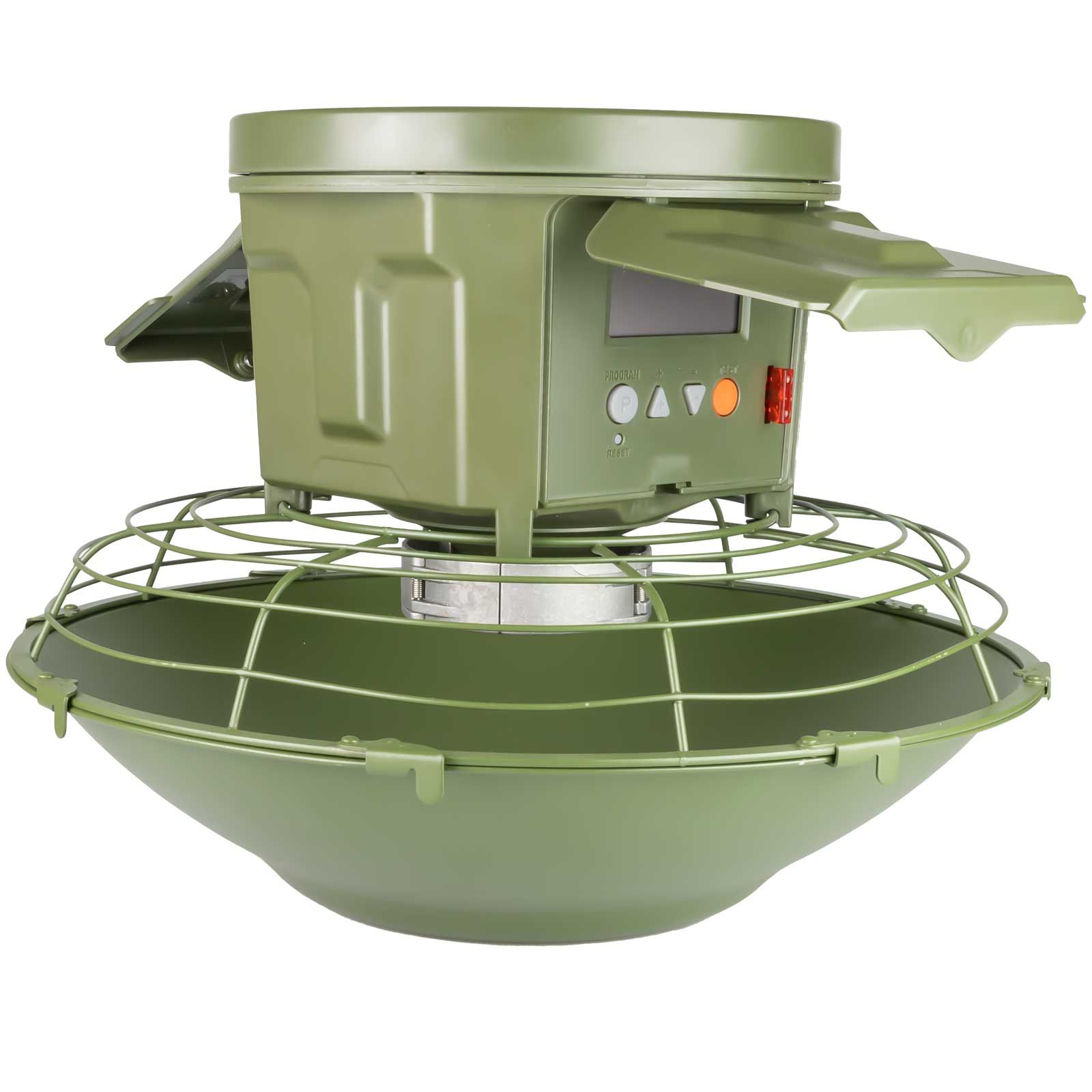 L'épandeur automatique Eurohunt Evolution est équipé d'une cage de protection sur le disque d'épandage et d'un entonnoir qui évacue l'excès d'aliment vers le bas, évitant ainsi les déchets et les résidus. Chaque détail est conçu pour une efficacité maximale : le disque d'épandage ne s'ouvre que lorsque l'épandeur est en marche et se referme automatiquement une fois le processus d'épandage terminé.