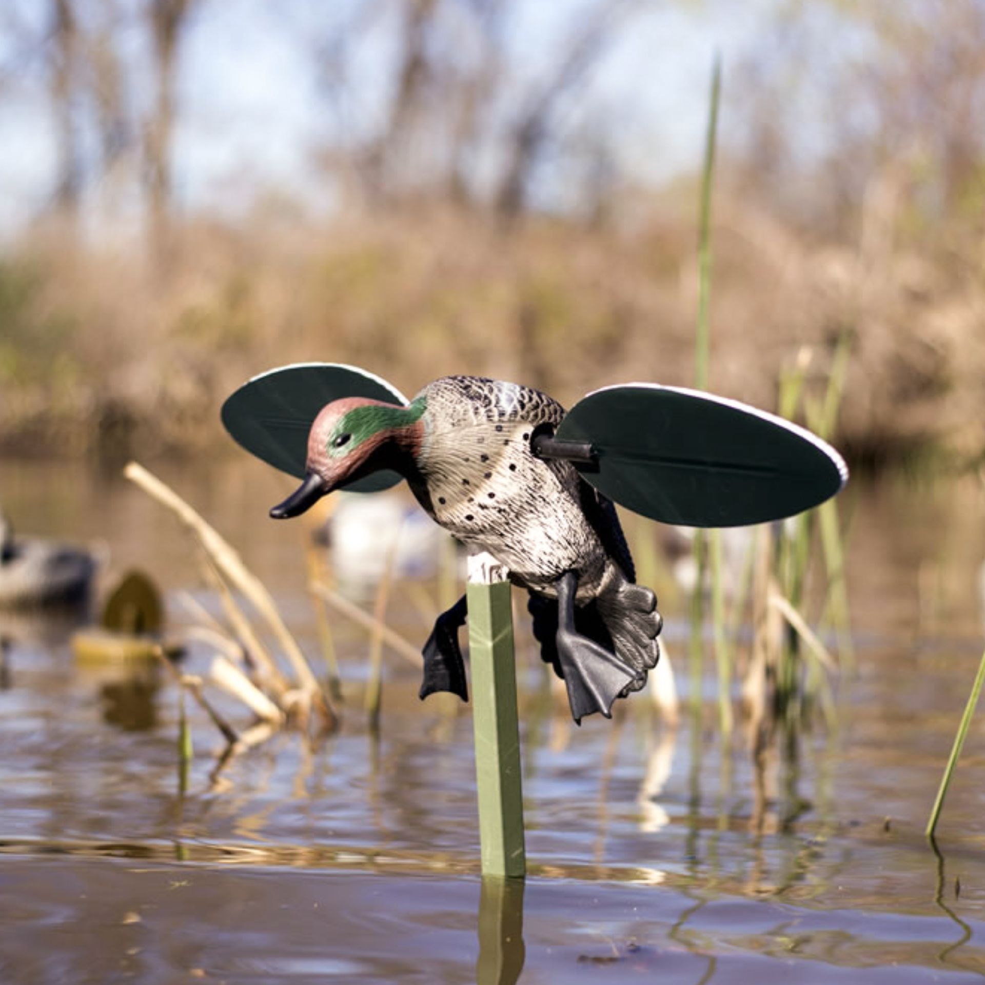 Mojo presents the completely new Mojo Teal duck decoy with Super Fast Wings - a completely new concept in the duck hunt! Experiences have shown that stick ducks, gnatters, crickets, whistles, divers and all other duck species react much more to the faster stroboscope effect of a spin-wing lock bird. The Mojo Teal is a realistic-looking crick denter with wings that rotate up to twice as fast as the typical spin-wing block bird on today's market.