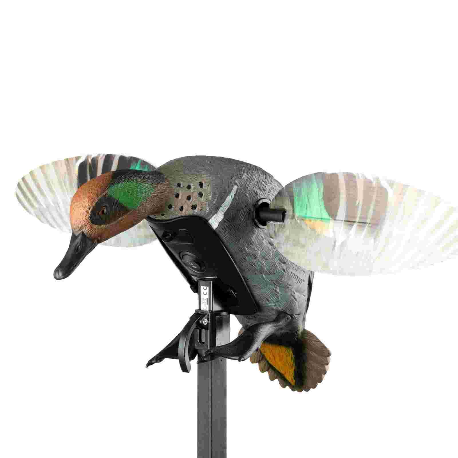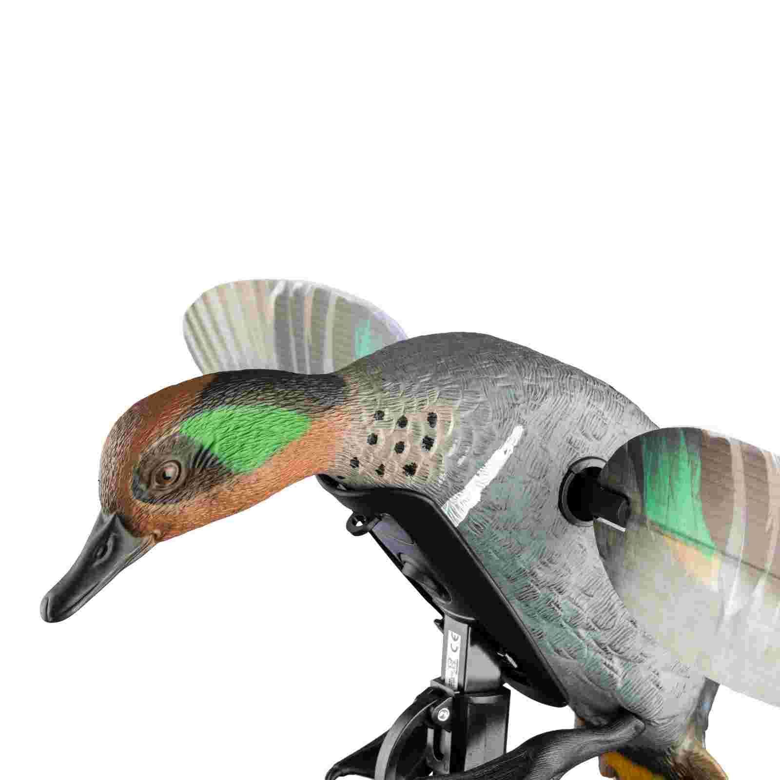 The Mojo Es Green Wing Teal duck decoy is characterized by its magnetic wings , which create an authentic wing movement. This realistic movement makes the decoy particularly attractive for wild birds. The decoy is operated with 4 AA batteries (not included in the scope of delivery), which gives them flexibility to use it wherever they need it.