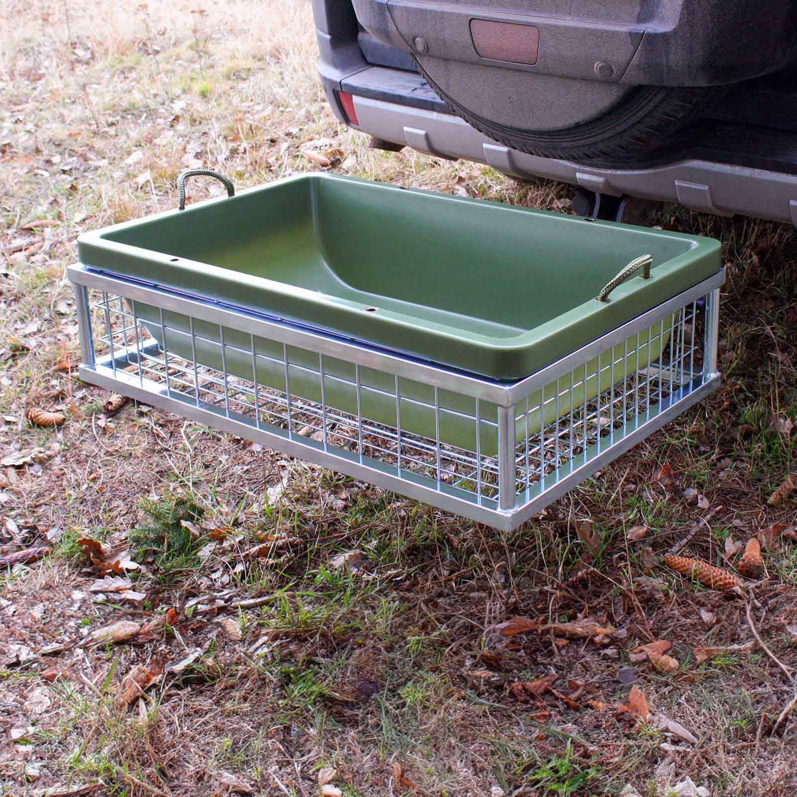The rear carrier galvanized, coupling 89x58.5x20 cm is an indispensable tool for everyone who needs a practical and reliable transport solution. Whether killed game, food or other objects, this rear carrier offers enough space and is easy to assemble on the trailer coupling.