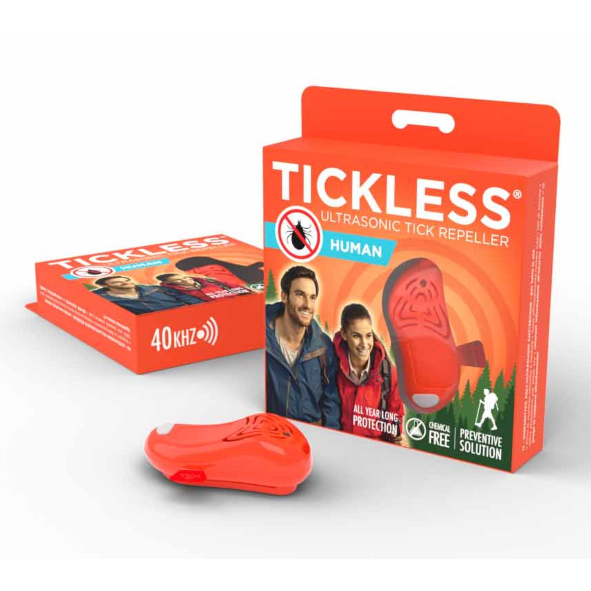 De la randonnée au camping, en passant par toutes les détours hors route non planifiés, TICKLESS® Human garantit que votre voyage est exempt de tiques, où que vous mène l'appel de la nature. TICKLESS® Human est la solution idéale pour éloigner les tiques lors d'activités en plein air comme la randonnée, le jardinage, la chasse, la marche ou le camping.