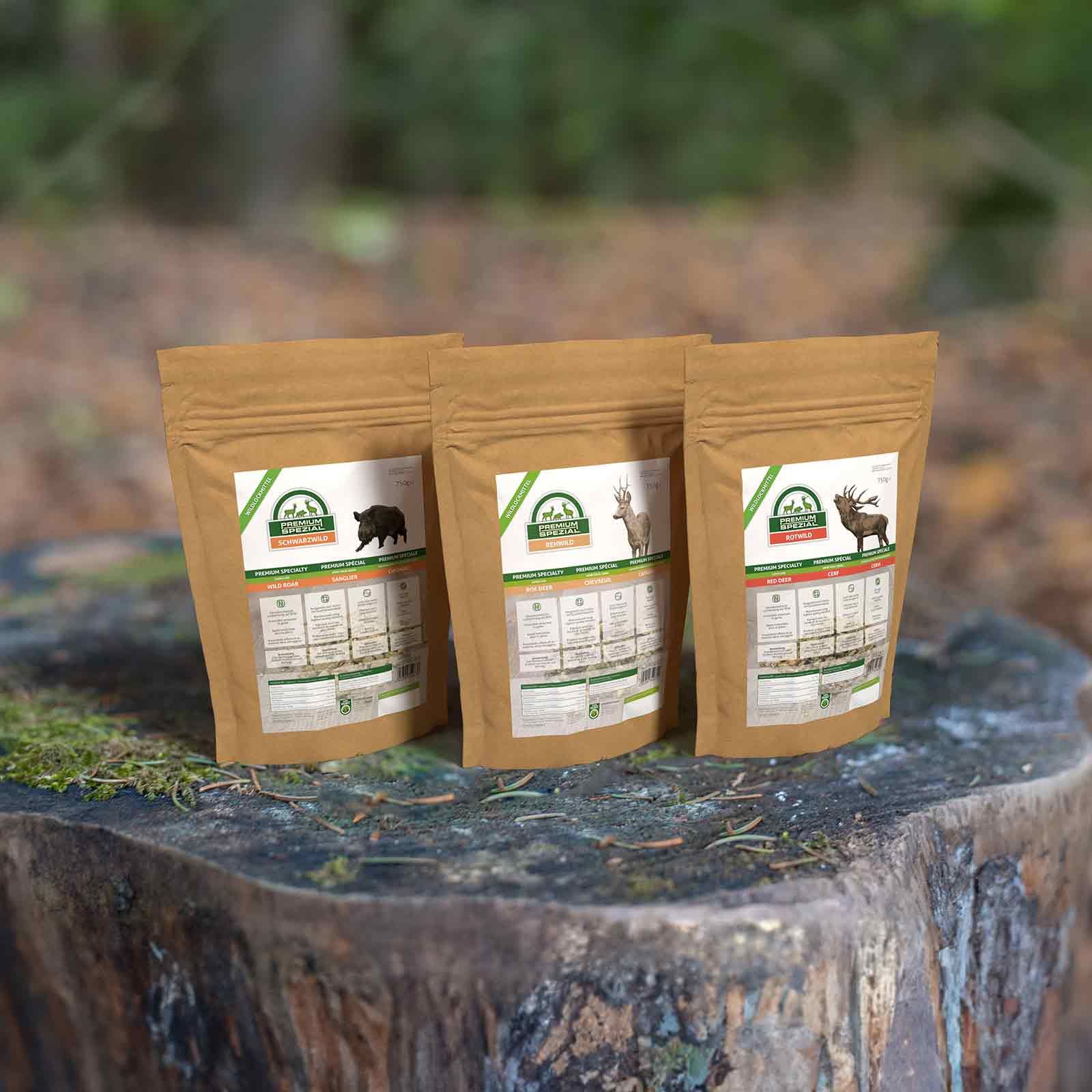 Après plus de deux ans de développement et d'essais dans les régions de grand gibier d'Europe, vous pouvez enfin commander notre nouvelle série d'attractifs PREMIUM Spécial. L'effet de ces produits sur le gibier a dépassé de loin nos attentes pendant la phase de test. Grâce à ses possibilités d'application flexibles, il peut être utilisé à de nombreux endroits du territoire de chasse. PREMIUM Spécial devient ainsi un soutien ciblé et efficace pour la chasse. L'attractif est disponible en version pour le chevreuil, le cerf et le sanglier.