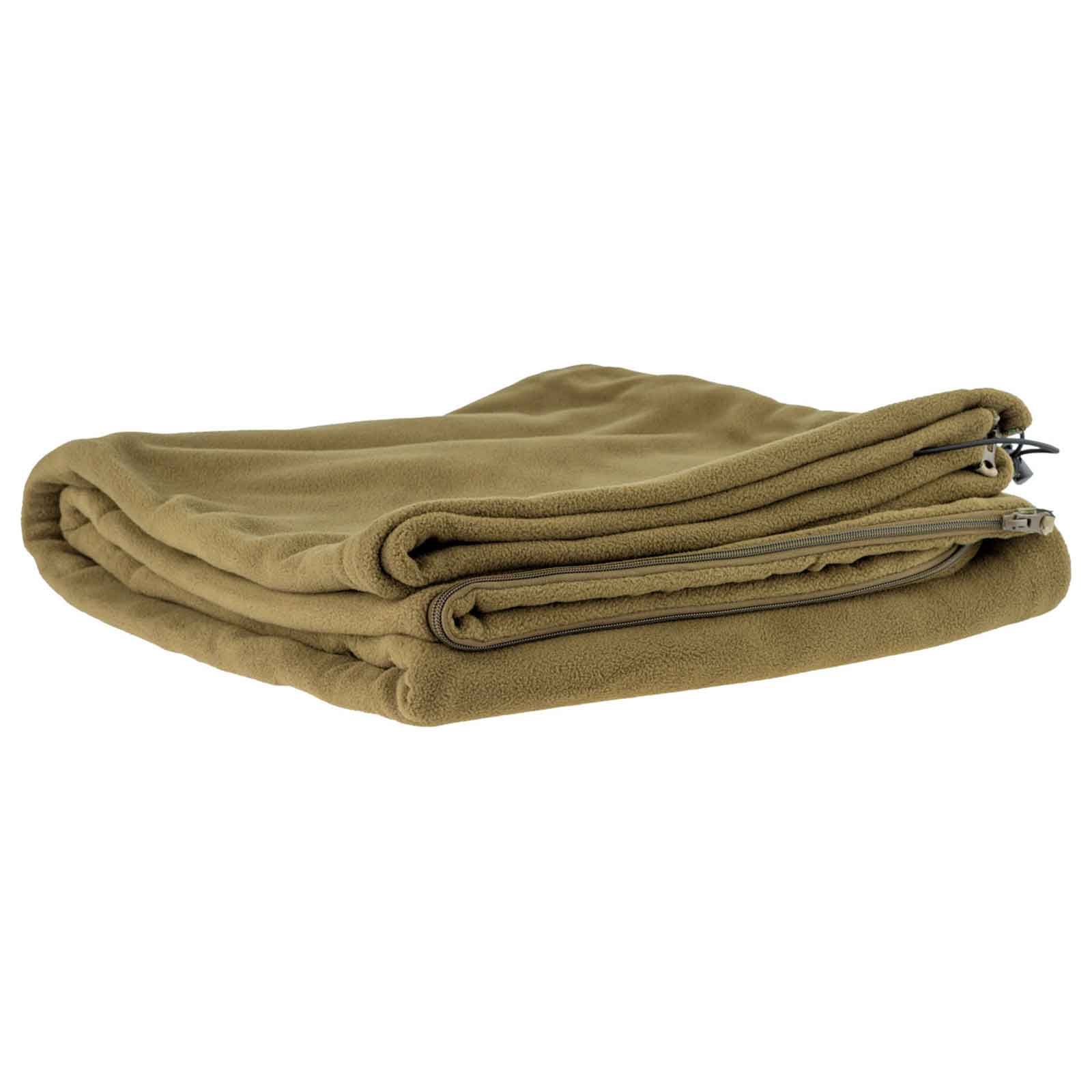 Couverture polaire chaude avec fermeture éclair sur le côté, peut aussi être utilisée comme sac de couchage, petite dans son sac de transport, idéale pour le sac à dos, est en 100% polyester.