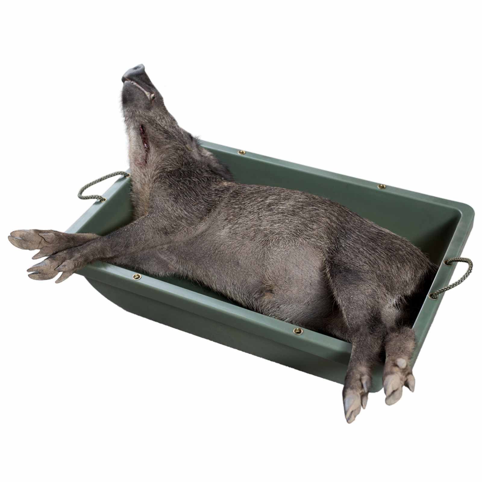 Notre nouveau bac à gibier tout usage est doté d'une proue en forme de traîneau et de patins intégrés pour faciliter la traction du bac sur le sol. La surface lisse permet de nettoyer facilement le bac. Avec quatre œillets pour le passage de la corde, en matériau PE indestructible, résistant aux chocs et à la rupture et résistant à une température de +70° C / - 70°C,