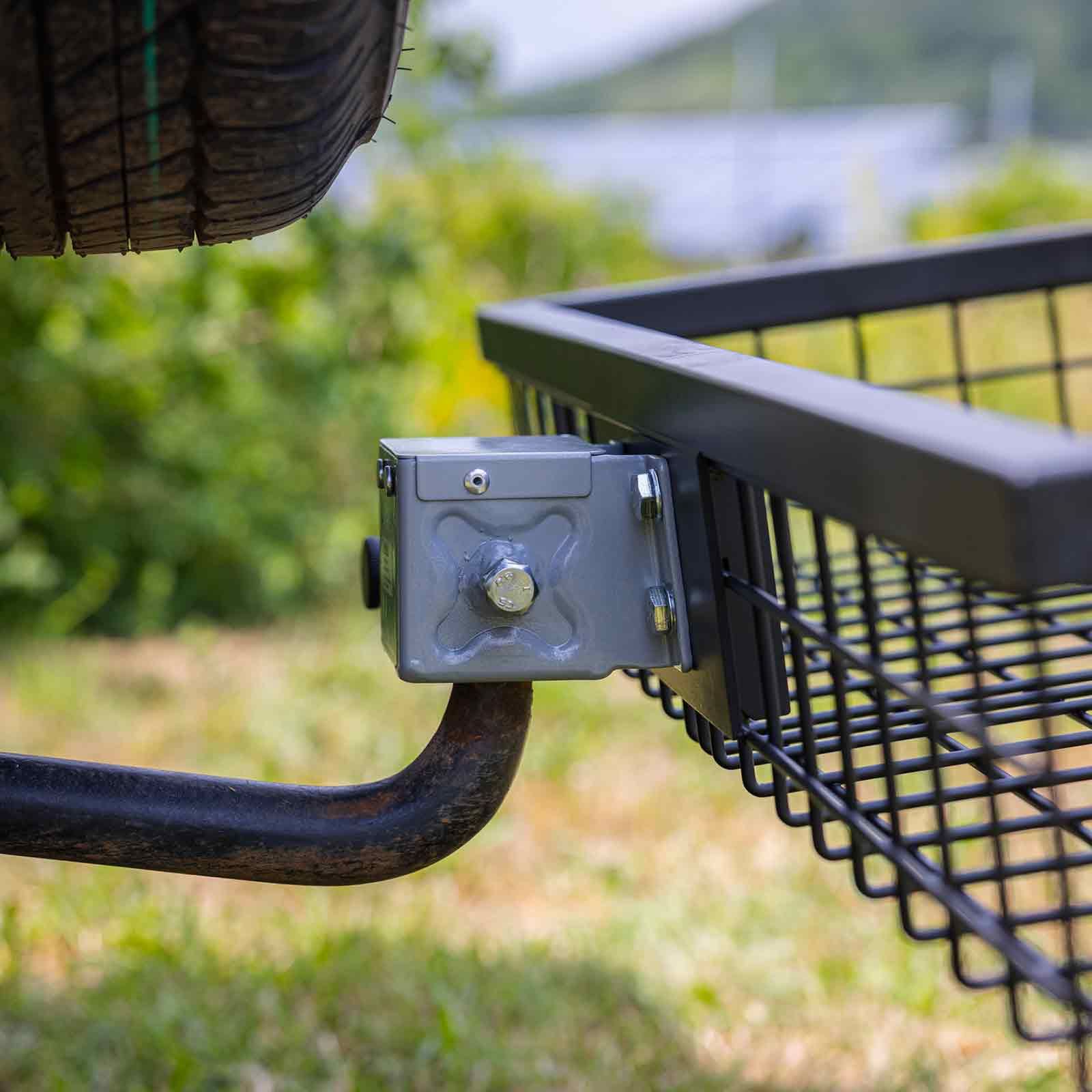 Il se caractérise par son système d'attelage rapide, qui facilite le montage et le démontage. Son système pliable le rend extrêmement compact lorsqu'il n'est pas utilisé, ce qui permet de gagner de l'espace précieux. Ce "Porte bagages arrière" est particulièrement utile pour ceux qui ont besoin d'un espace de transport supplémentaire et apprécieront sa commodité et sa fonctionnalité. Le porte-bagage arrière est compatible avec la plupart des bacs à gibier et bacs polyvalents. Il vous offre ainsi une grande flexibilité d'utilisation. Vous pouvez facilement l'adapter à vos besoins individuels et transporter différents chargements.