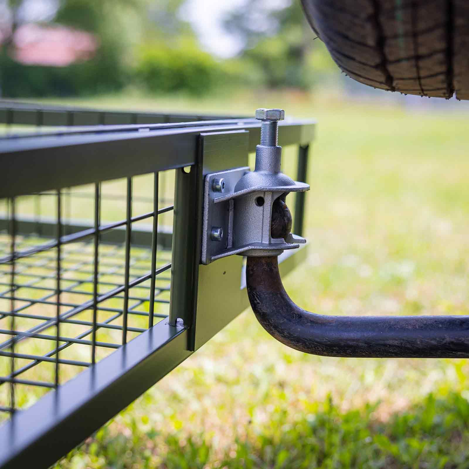 L'un des principaux avantages de ce porte-gibier est sa facilité d'installation. Conçu pour être fixé à l'attelage de la remorque, il offre une fixation universelle qui le rend compatible avec la plupart des véhicules. Avec ses dimensions de 890 x 585 x 200 mm (L x P x H), elle offre suffisamment d'espace pour vos affaires sans jamais être encombrante. Rappel : le porte-gibier livré sans éclairage. Si nécessaire, nous vous recommandons de les acheter séparément afin de garantir une sécurité maximale lors de vos transports.