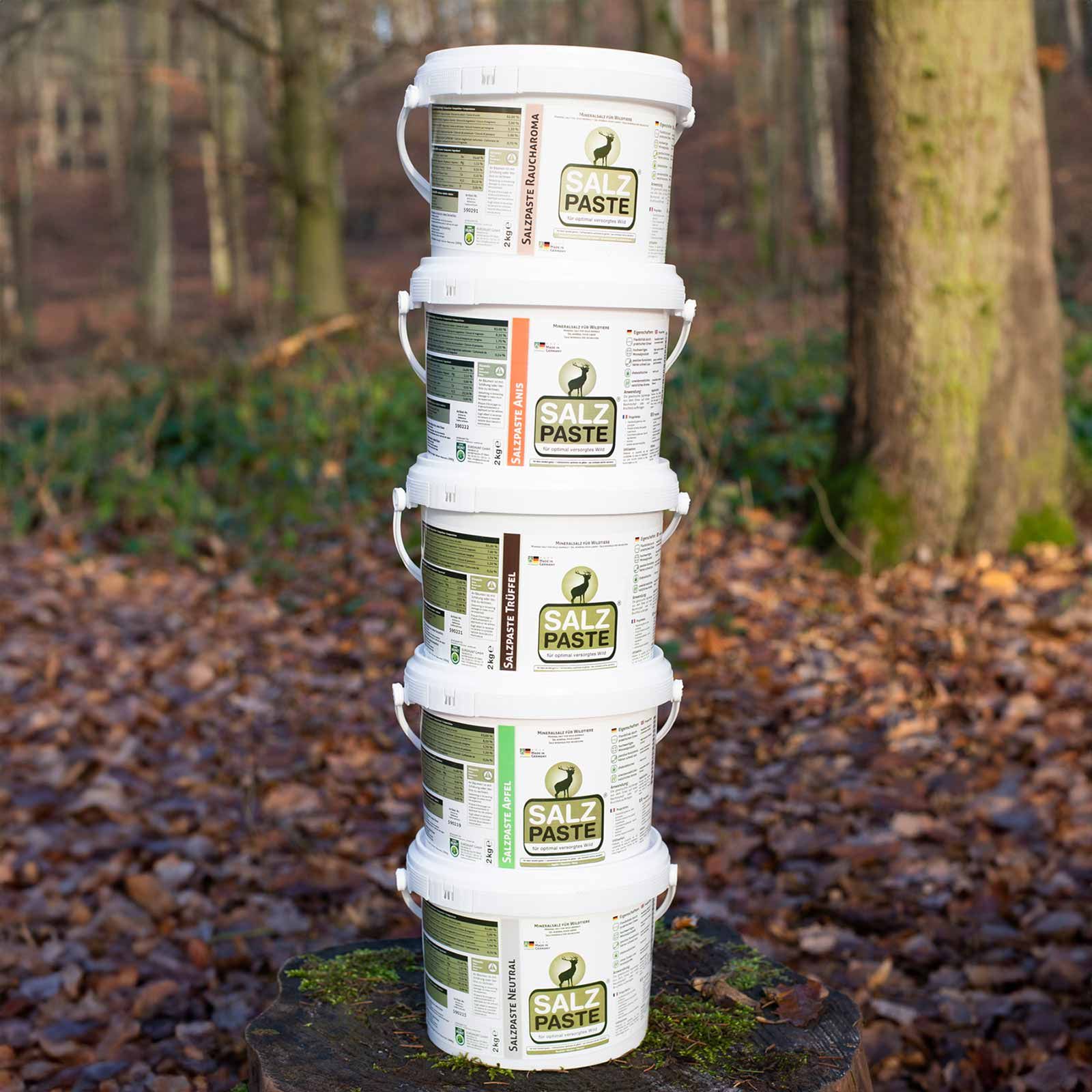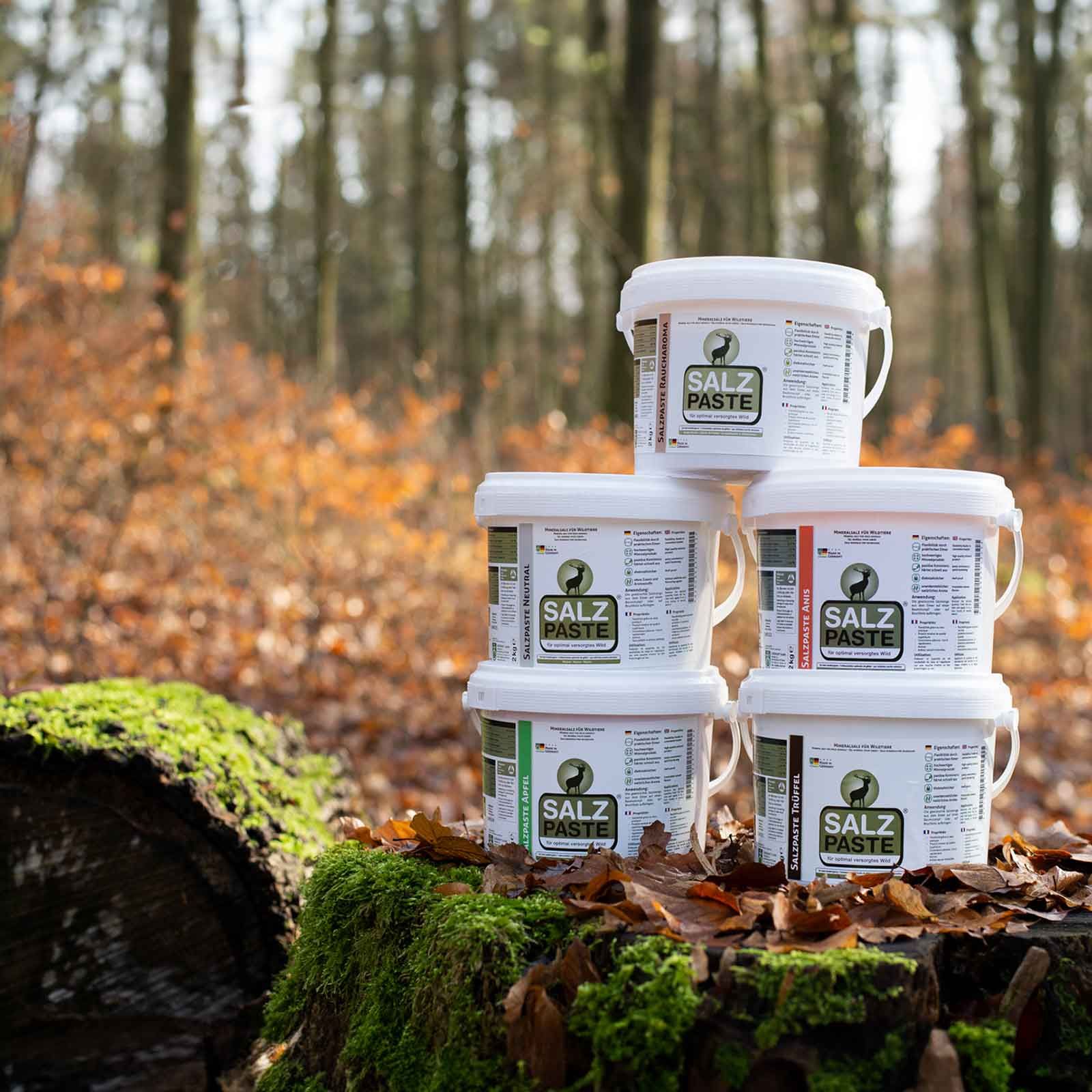 Le seau pratique de 2 kg permet d'avoir facilement la pâte de sel avec soi lors des sorties sur le terrain et d'en rajouter si nécessaire. Un avantage particulier : la pâte de sel pour gibier ne peut pas être volée !