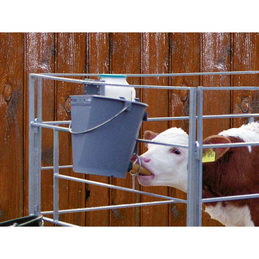 Seau pour veaux gris en plastique avec tétine 8 l