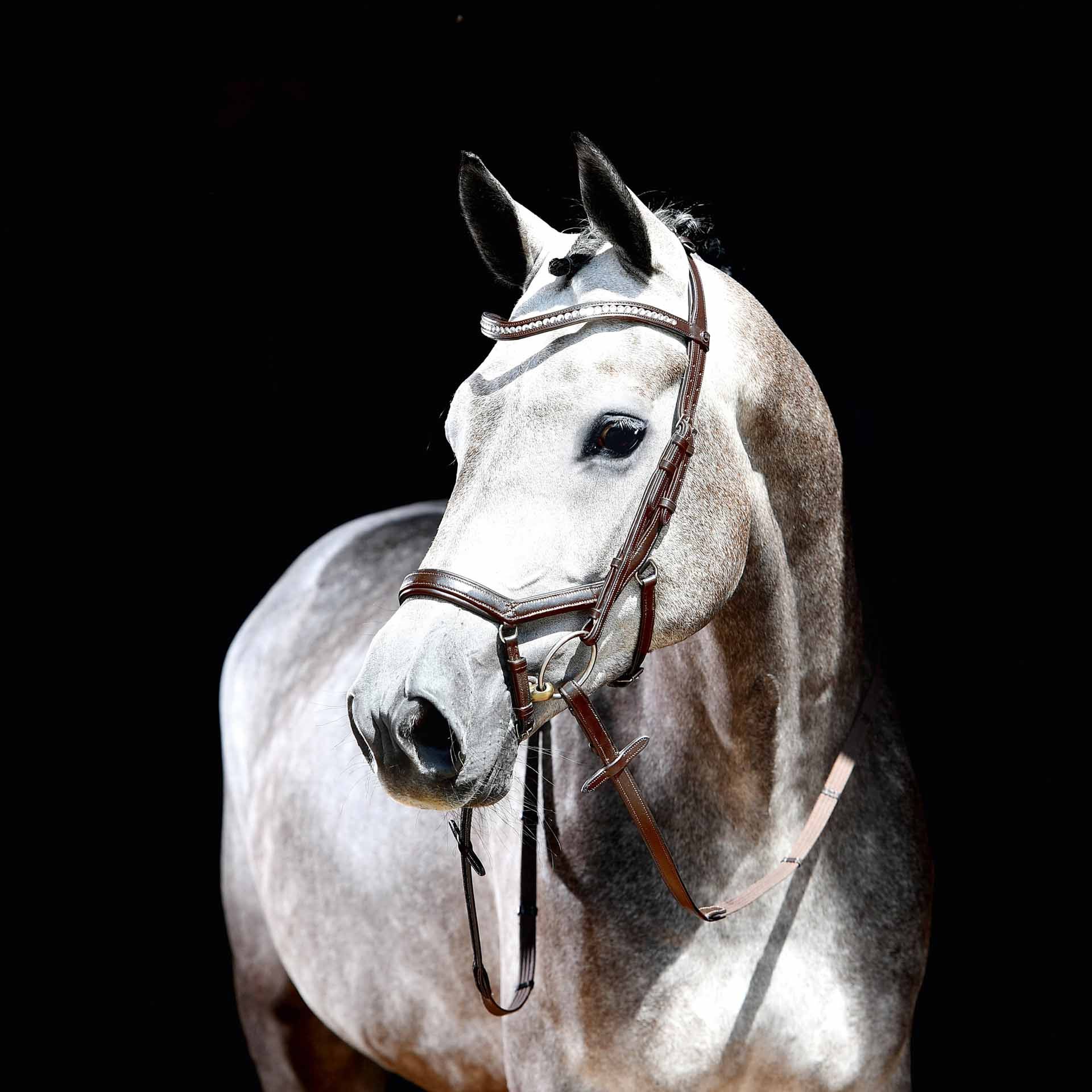 Le mors anatomiquement conçu assure une position stable du mors avec une action immédiate sur les lèvres et la langue, permettant une communication claire et une prise sûre. Le noseband extra court et doucement rembourré est placé à mi-hauteur sur l'os du nez pour minimiser la pression sur les nerfs sensibles, les vaisseaux sanguins et les zones osseuses. L'arrivée du mors autour des branches du mors protège les lèvres et évite les zones de pression et de frottement, tandis que la courroie additionnelle de la ganache assure un soulagement des branches de la mâchoire inférieure et entoure doucement et sûrement la tête du cheval. Le mors offre une ajustabilité maximale de la taille et la possibilité de changer les angles pour s'adapter idéalement à l'anatomie de la tête individuelle du cheval.