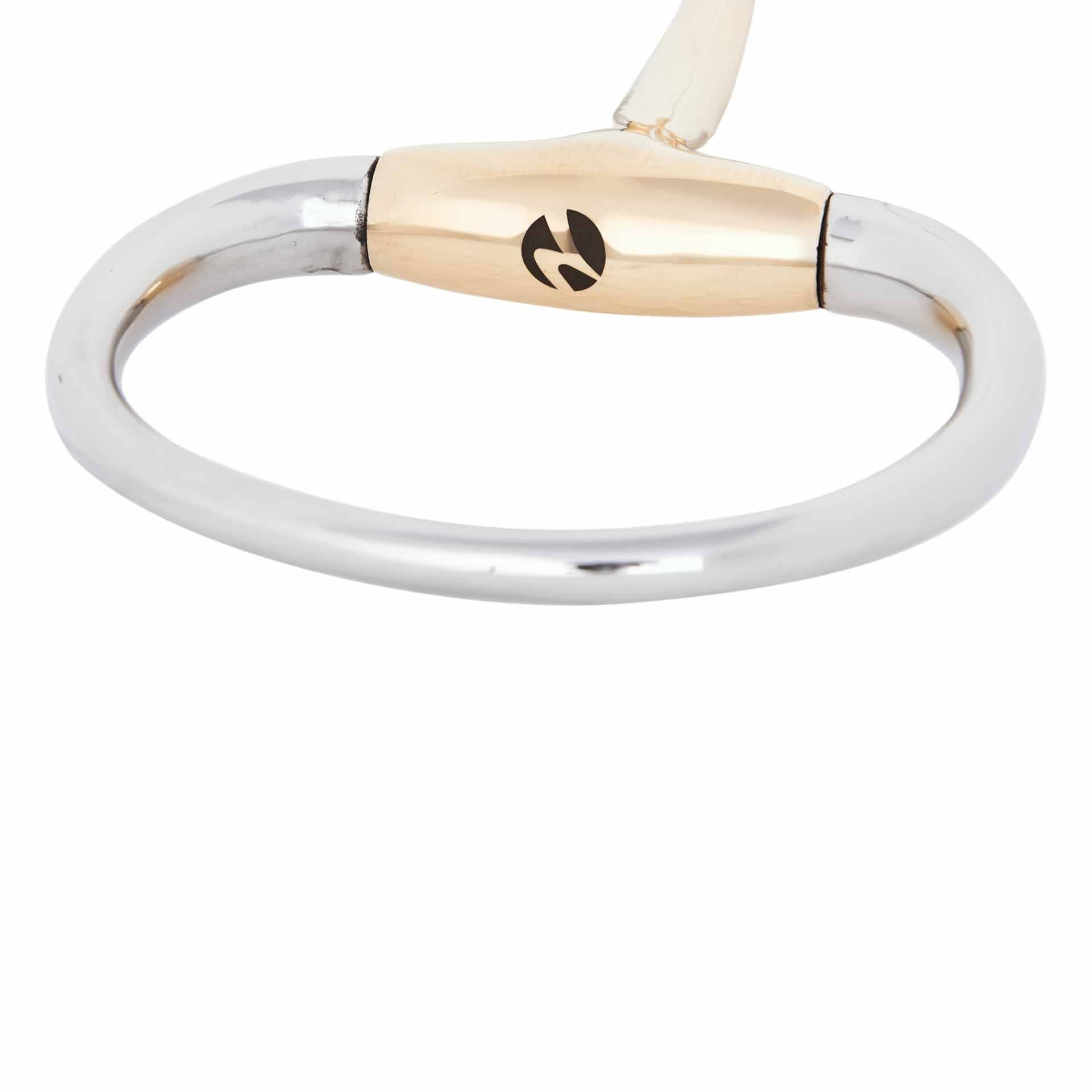 Le foret doit être vérifié régulièrement pour détecter tout signe d'usure, tel que des arêtes vives, et remplacé si nécessaire. Veuillez n'utiliser le mors que s'il est dans un état approprié qui ne nuit pas au bien-être du cheval.
