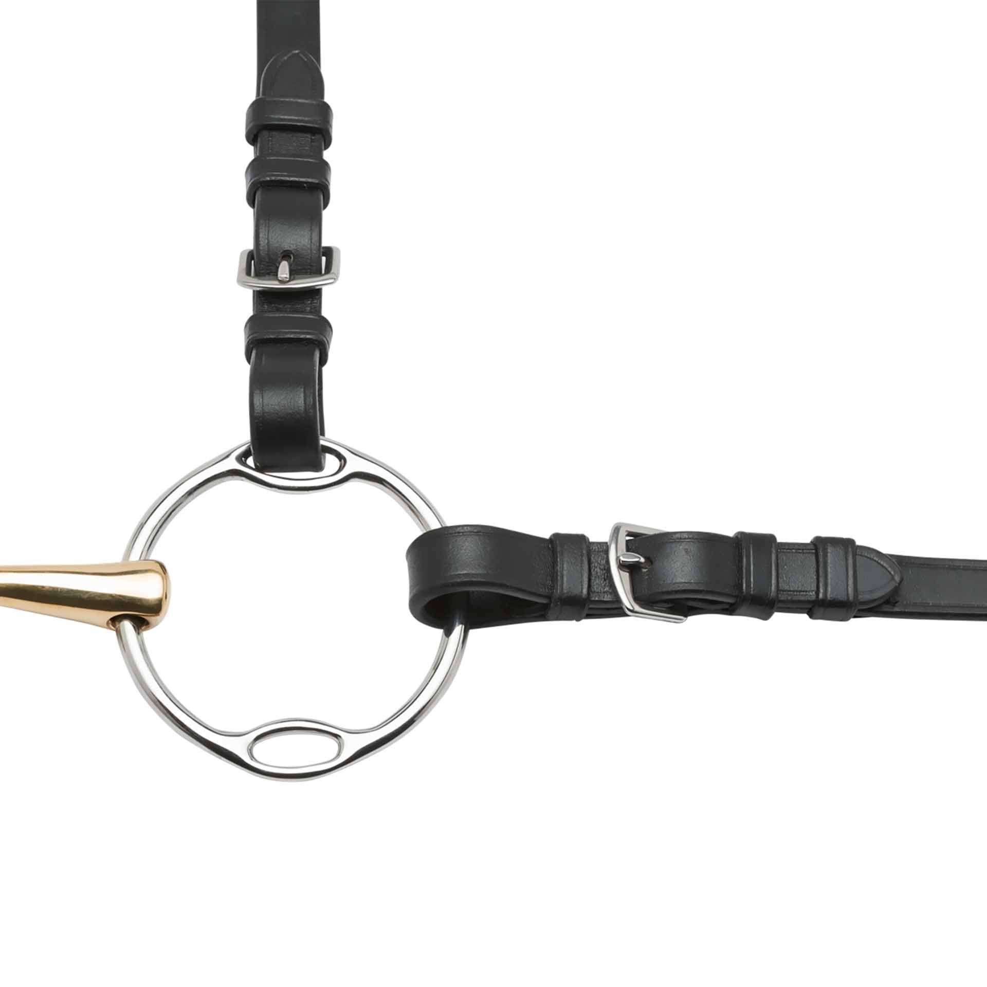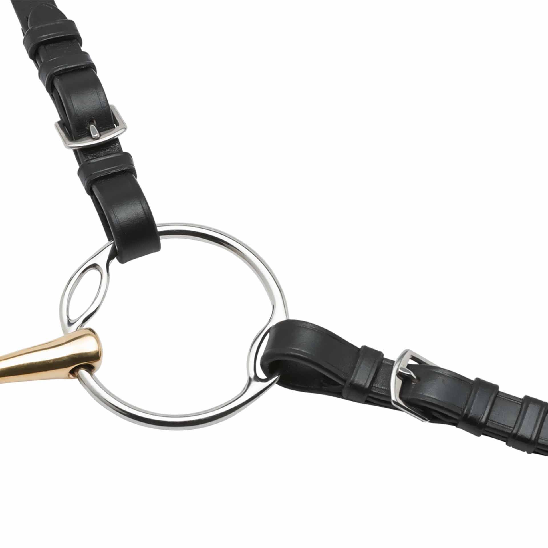 Le Mors simple à anneaux souples BUSSE KAUGAN-SHAPED, 14 mm, double brisure est unique en son genre avec son embouture double brisure et son ellipse en Kaugan®. Cela stimule non seulement l'acceptation du mors par le cheval, mais aussi la salivation, favorisant une expérience d'équitation plus agréable. Les anneaux intégrés offrent trois différentes options d'ajustement, te permettant de choisir l'ajustement le plus adapté à ton cheval. De plus, son levier plus court par rapport à un mors à trois anneaux, réduit la pression sur la nuque, le rendant idéal pour les chevaux qui nécessitent parfois une action plus intense.