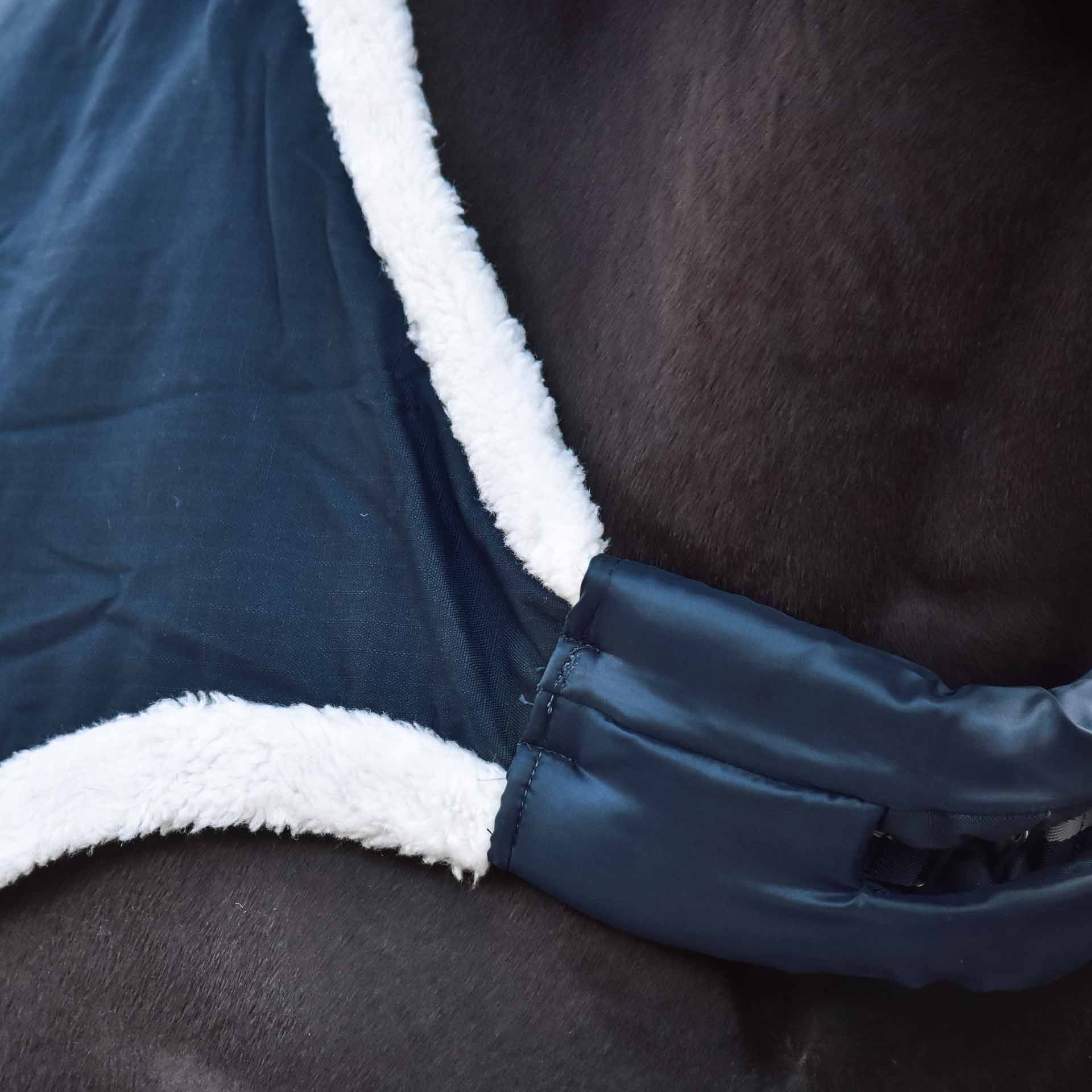 Pour le réglage final d'une couverture pour cheval, les options de réglage sur le produit doivent être utilisées, car une application incorrecte peut entraîner des dommages. Même avec un ajustement optimal, des contrôles réguliers de l'ajustement sont essentiels. Vérifiez que la couverture est bien ajustée, que les attaches Velcro sont propres (pour éviter les frottements) et que la couverture est intacte.