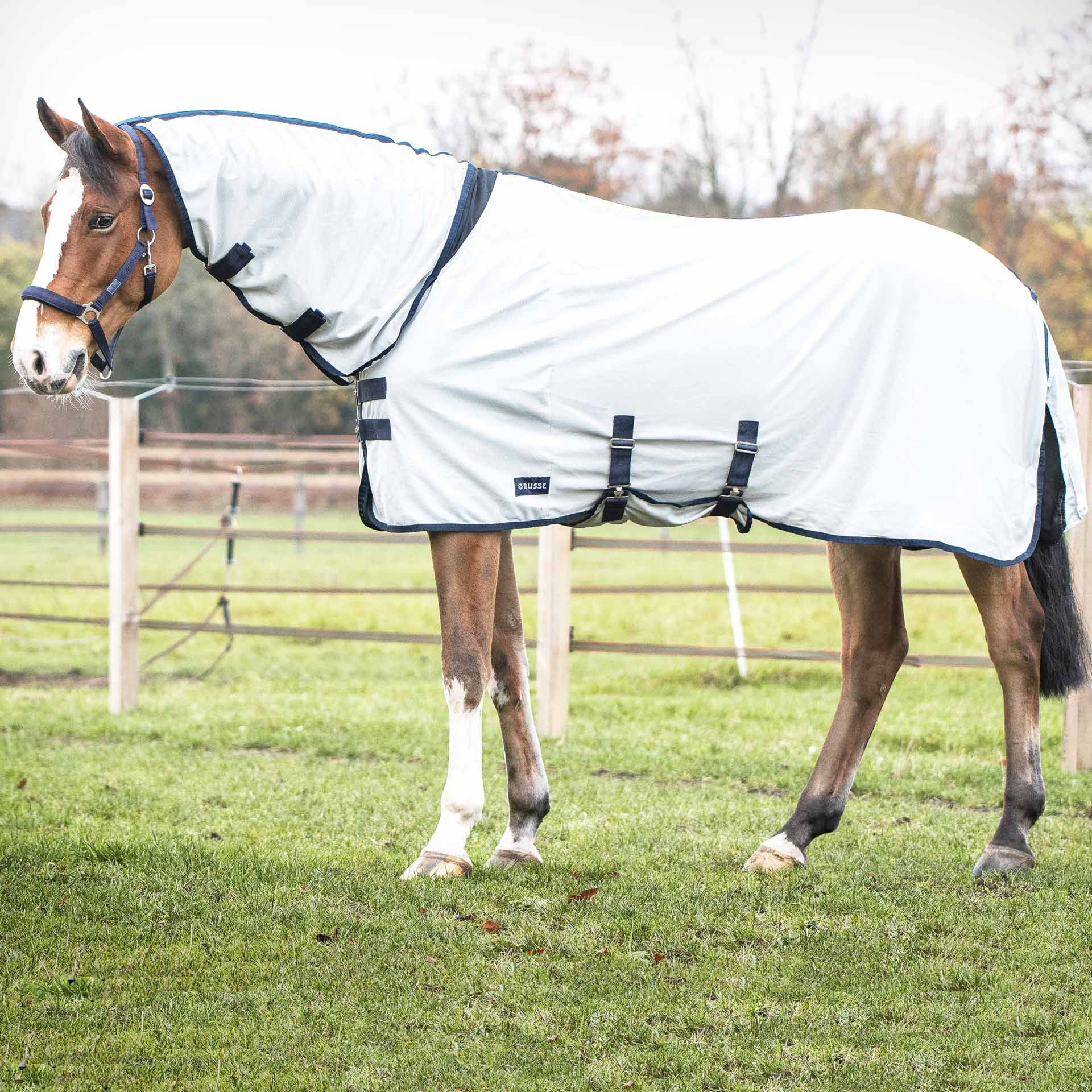 Réponse :La Couverture anti-mouches d'extérieur BUSSE COMFORT PRO est conçue à partir d'un matériau léger en polyester à la structure de tissage spéciale. Elle est rapide à sécher, respirante et dispose de zones doublées d'un revêtement satiné lisse pour le confort de votre animal.