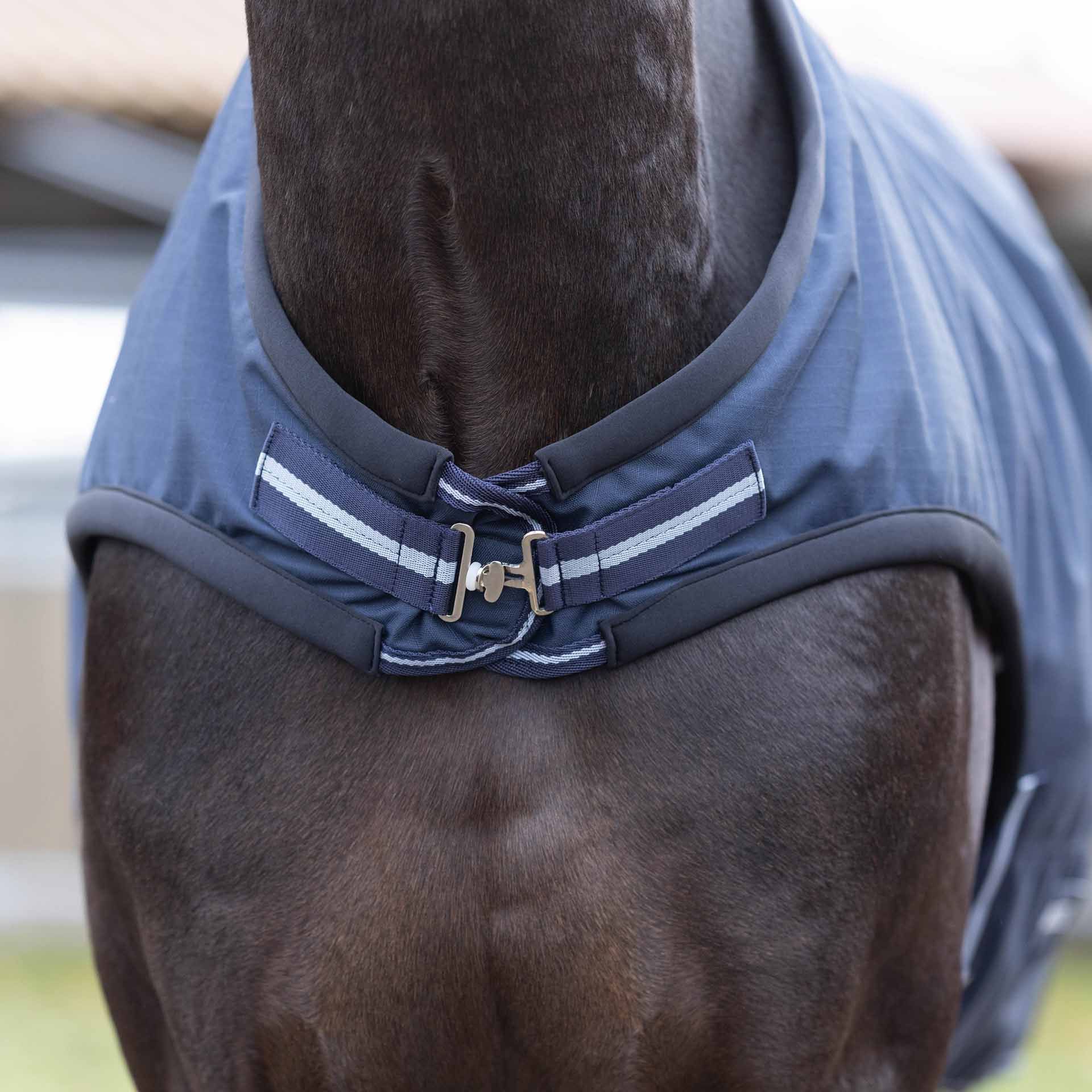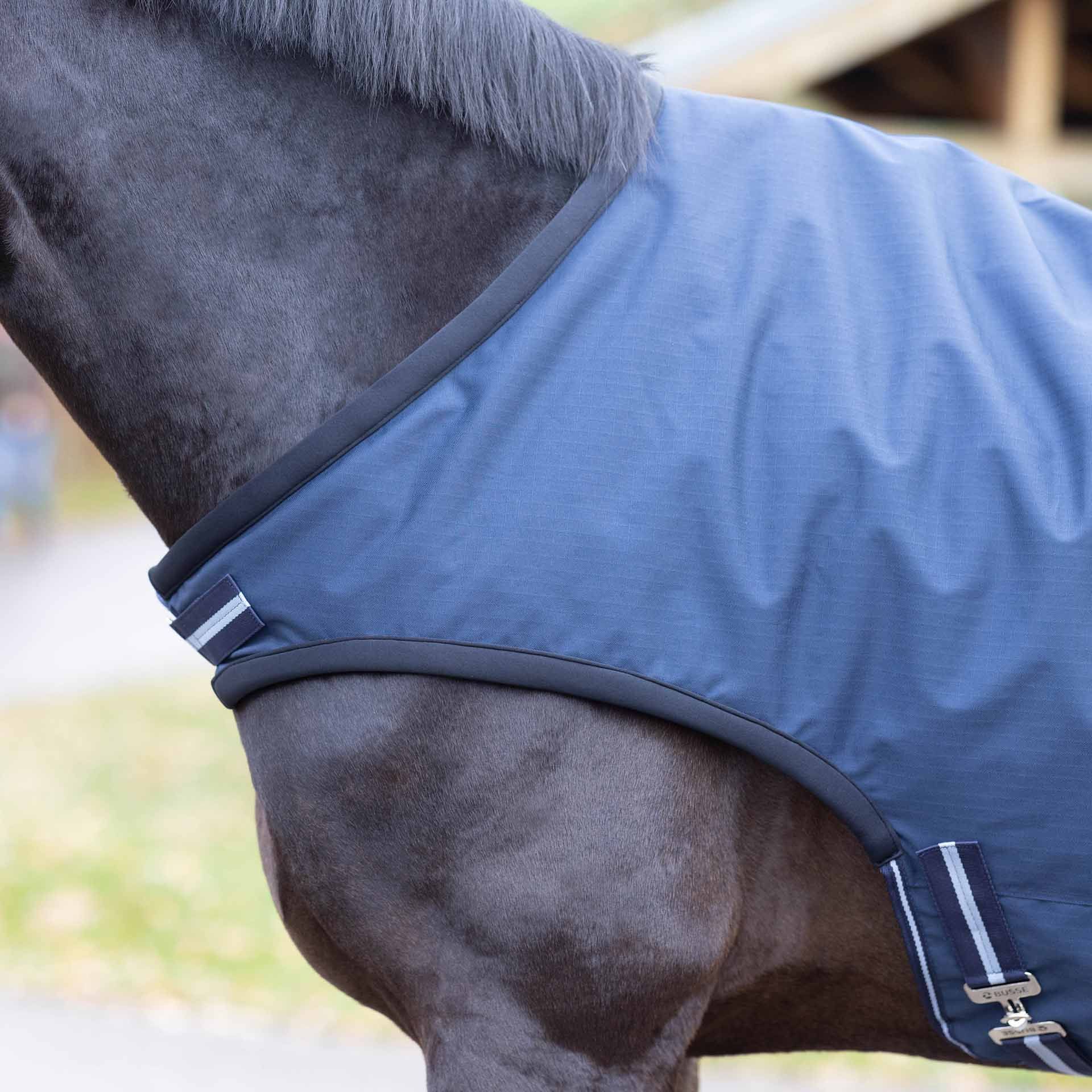 La couverture fournit une isolation thermique légère, permettant à votre cheval de maintenir sa température confortable pendant son utilisation. En outre, elle est équipée d'une doublure en satin extrêmement lisse qui permet un mouvement doux pour le pelage sans frottement. Les zones de l'épaule, de la poitrine et du cou sont entièrement bordées de caoutchouc synthétique doux avec une surface en jersey adaptée à la peau pour éviter les points de frottement. Des bandes réfléchissantes sur les deux côtés longitudinaux et sur la protection de la queue assurent une meilleure visibilité dans l'obscurité.