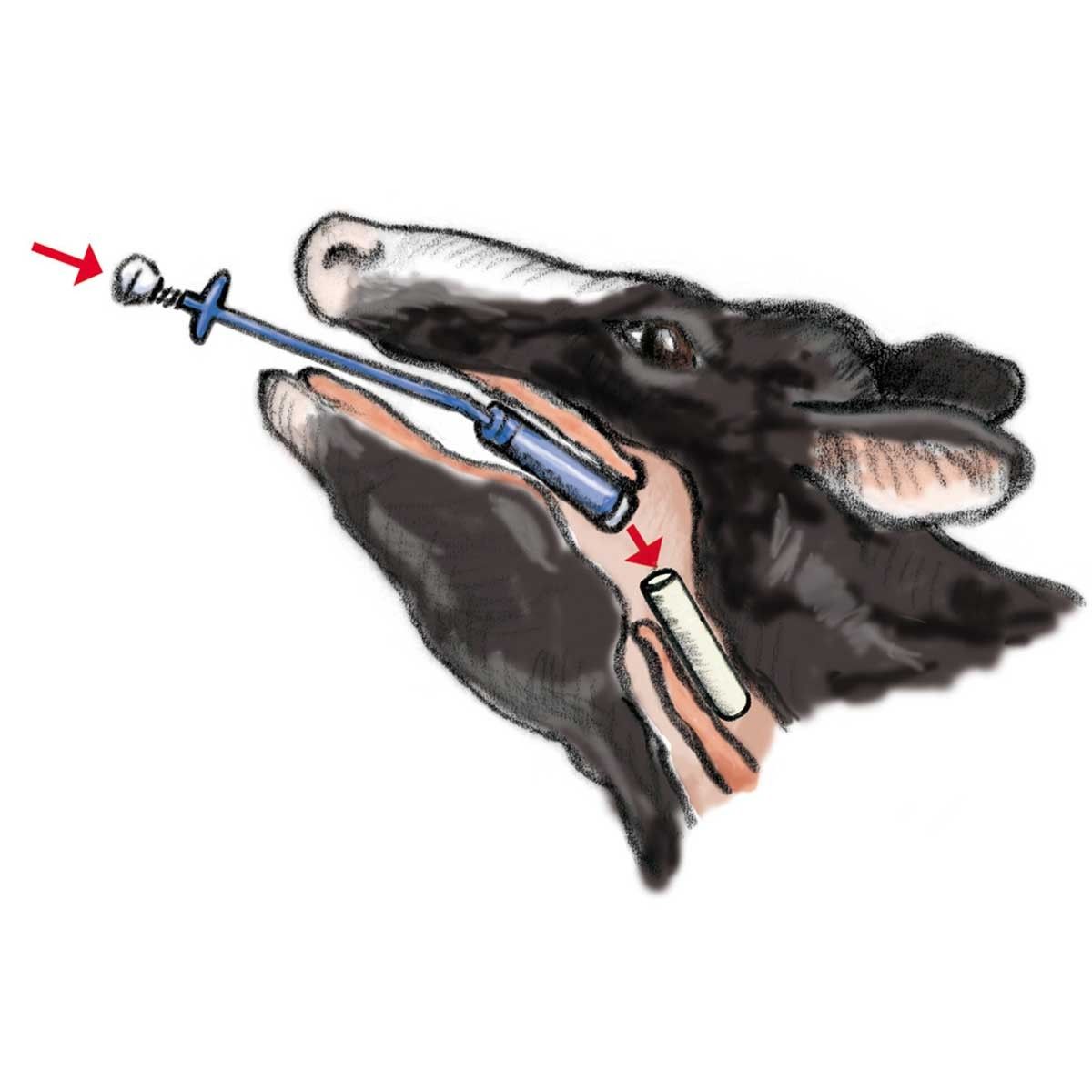 Ce Le codeur est adapté aux aimants de bolus et de cage. Le bolus est maintenu en place par des ressorts, ce qui l'empêche de tomber prématurément. Le tube d'entrée a un diamètre intérieur de 36 mm et une longueur de 11 cm. Le distributeur de pilules ou d'aimants convient pour le Calzogol bolus (art. n° 15980), le Ket-o-Vital bolus (art. n° 15982), le Fertilgol bolus (art. n° 15983), le Vitagol bolus (art. n° 15981) et les aimants de cage