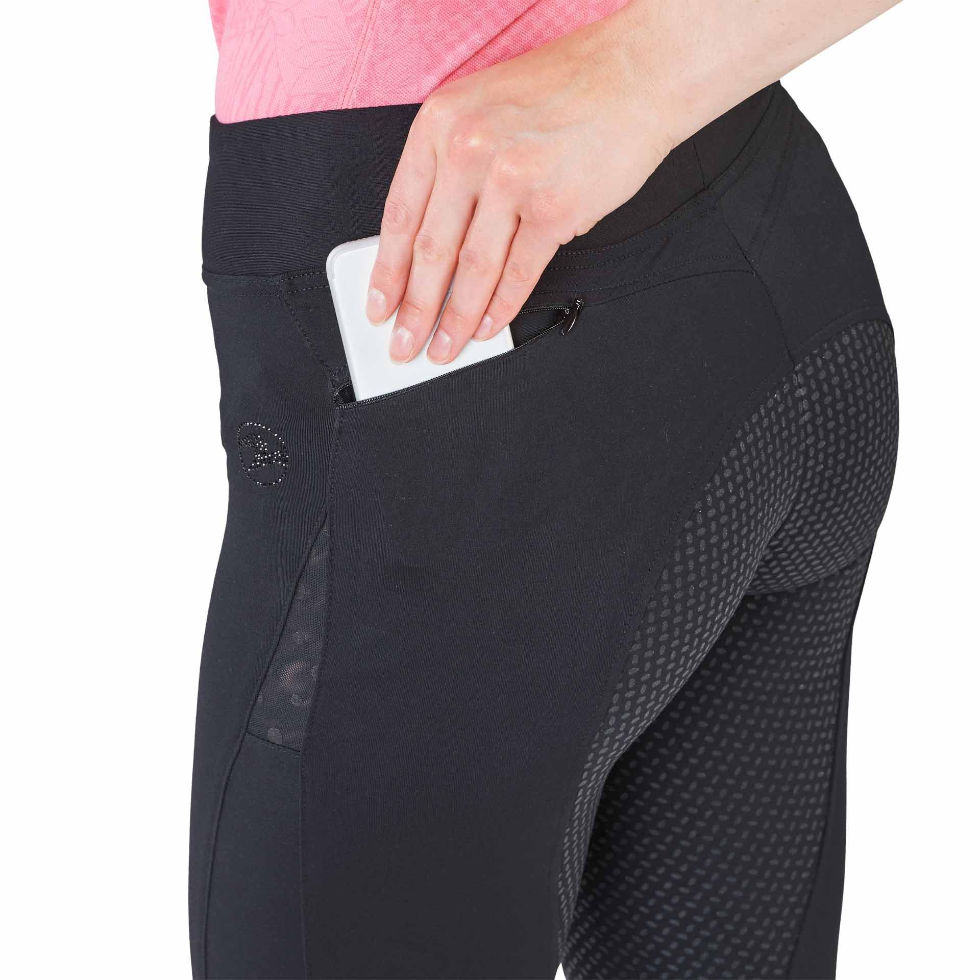 Le Collant d'équitation BUSSE EPIC FIT LACE se caractérise par son petit insert en dentelle, son tracé de coutures le long des cuisses, sa poche pour smartphone intelligemment dissimulée et parfaitement positionnée dans la zone fessière avec une fermeture éclair, et une poche à fermeture éclair sur le devant, idéale pour les petits objets susceptibles de se perdre.
