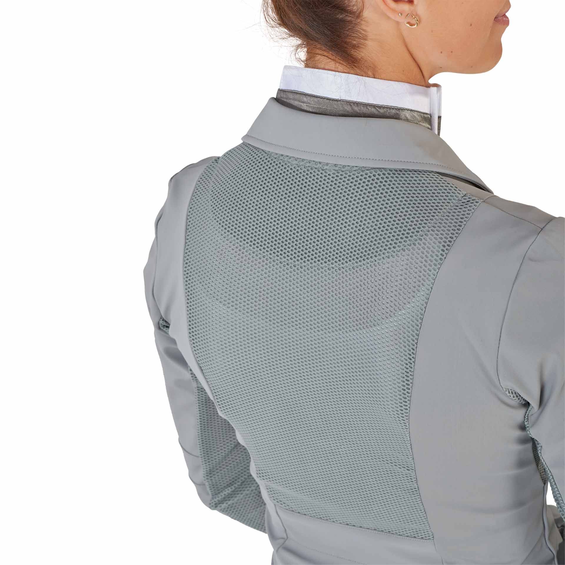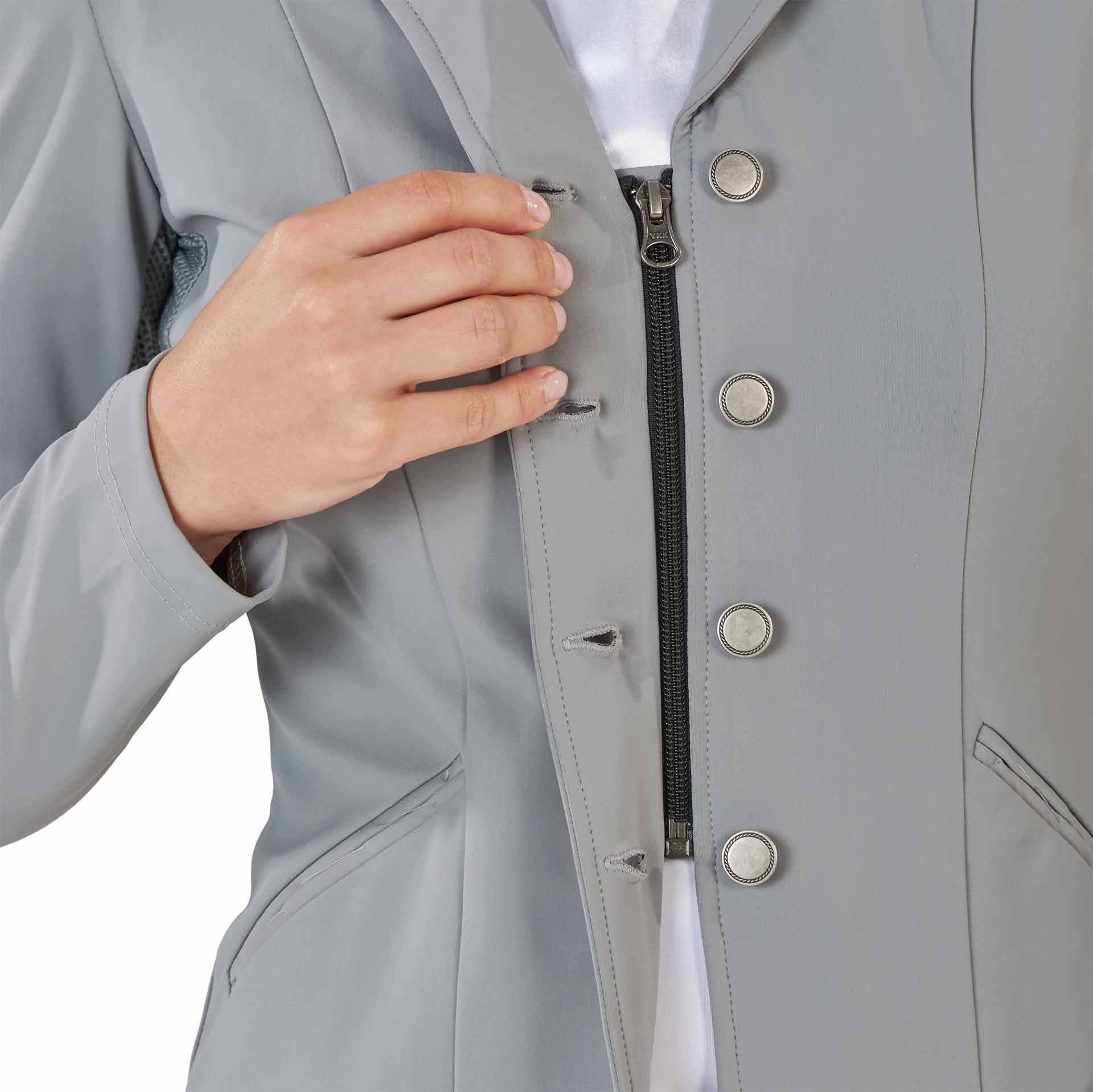 La veste de concours BUSSE FLORENZ est dotée de boutons discrets, de deux poches avant et d'inserts en mesh élastiques le long des dessous des manches, ainsi qu'au niveau des épaules et du dos. Sa coupe classique et ajustée, son zip YKK® sous la patte de boutonnage pour un ajustement parfait en position médiane et ses coudes préformés garantissent un confort maximum lors de toutes vos activités équestres.