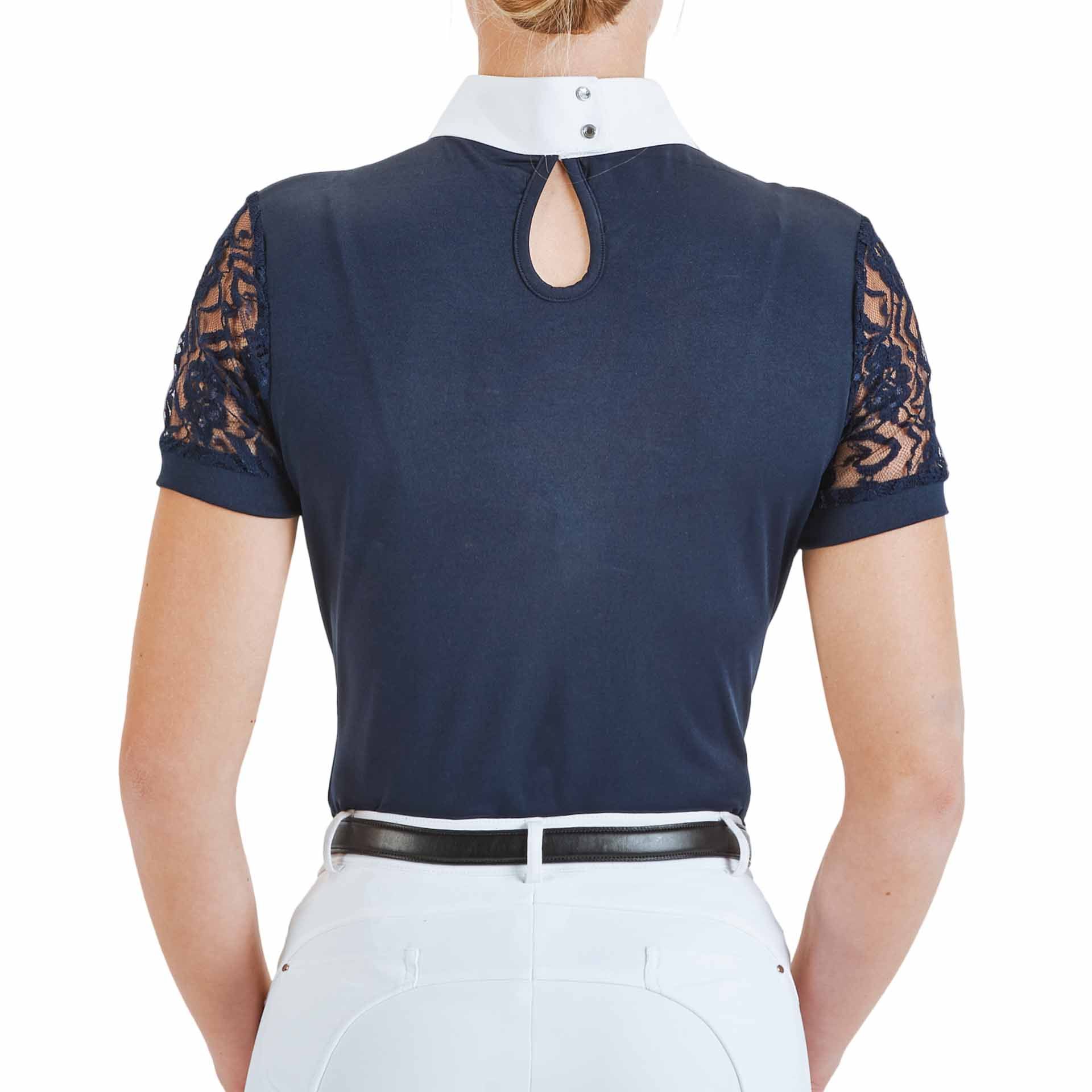 Découvrons le T-shirt de compétition BUSSE RAVENNA, un T-shirt de compétition qui allie élégance féminine et confort de port exceptionnel. Avec sa superbe dentelle et ses détails brillants, ce T-shirt t'assure de te démarquer lors de chaque compétition.
