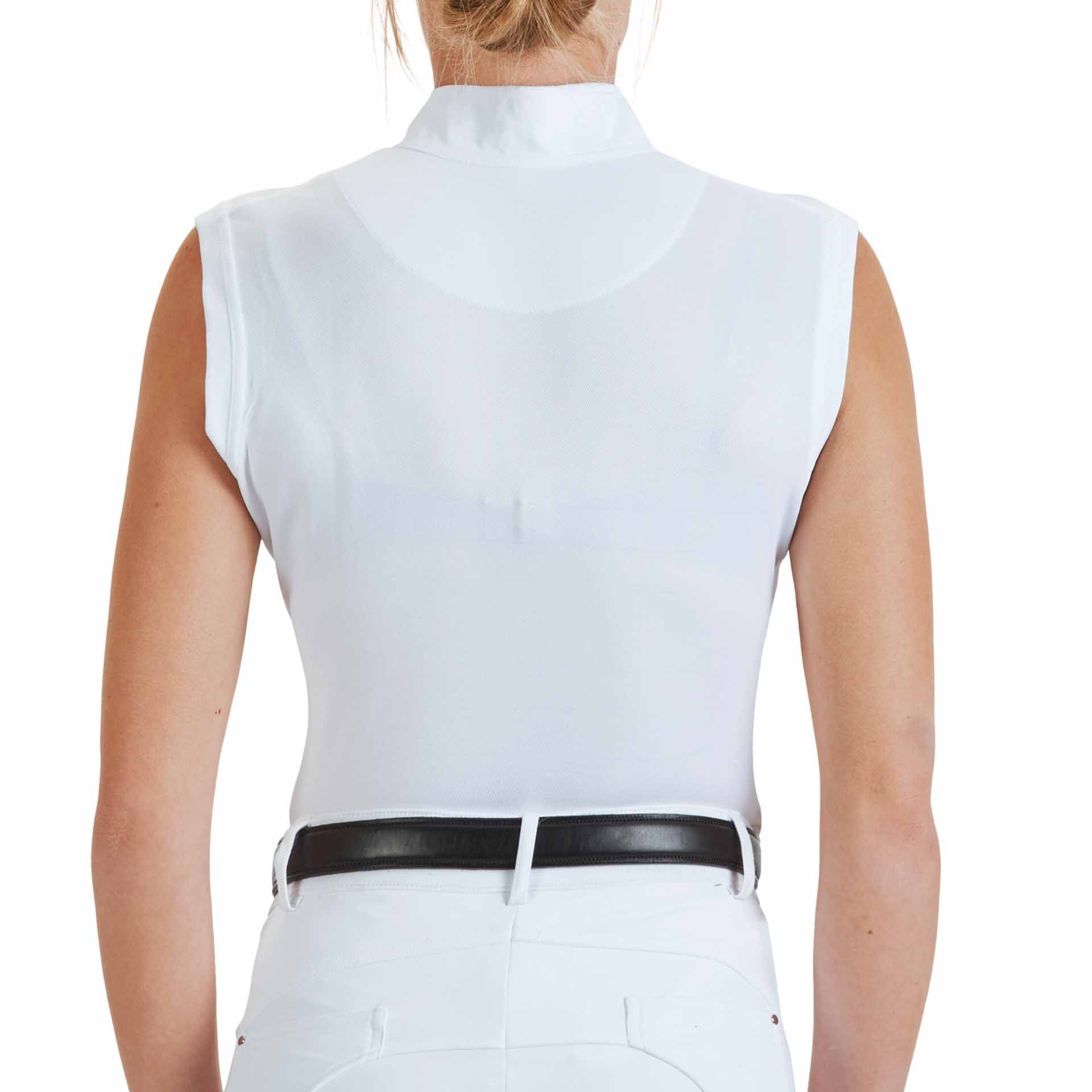 Ce t-shirt de concours sans manches, cintré, est fait d'un matériau micro-fonctionnel à texture piquée très agréable à porter. Il est facile d'entretien, sèche rapidement et ne nécessite pas de repassage, ce qui en fait le choix parfait pour les cavaliers qui veulent allier style, confort et facilité d'entretien.