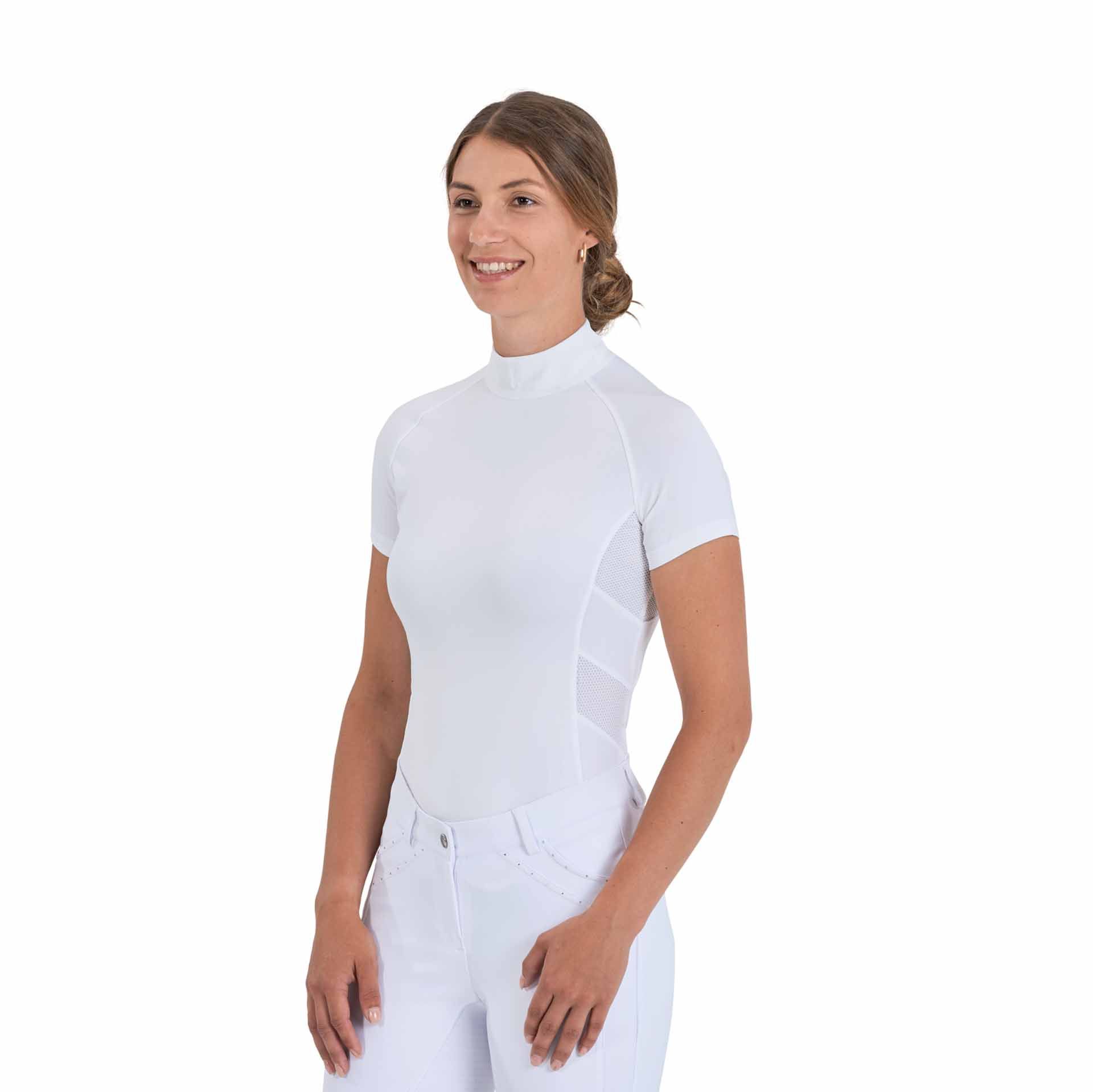 Ce T-shirt est conçu pour un confort supérieur et un rendement optimal. Son tissu micro-fonctionnel léger, respirant et élastique assure un excellent confort de port. De plus, il est facile d'entretien, sèche rapidement et ne nécessite pas de repassage, ce qui en fait un choix idéal pour tous vos concours équestres.