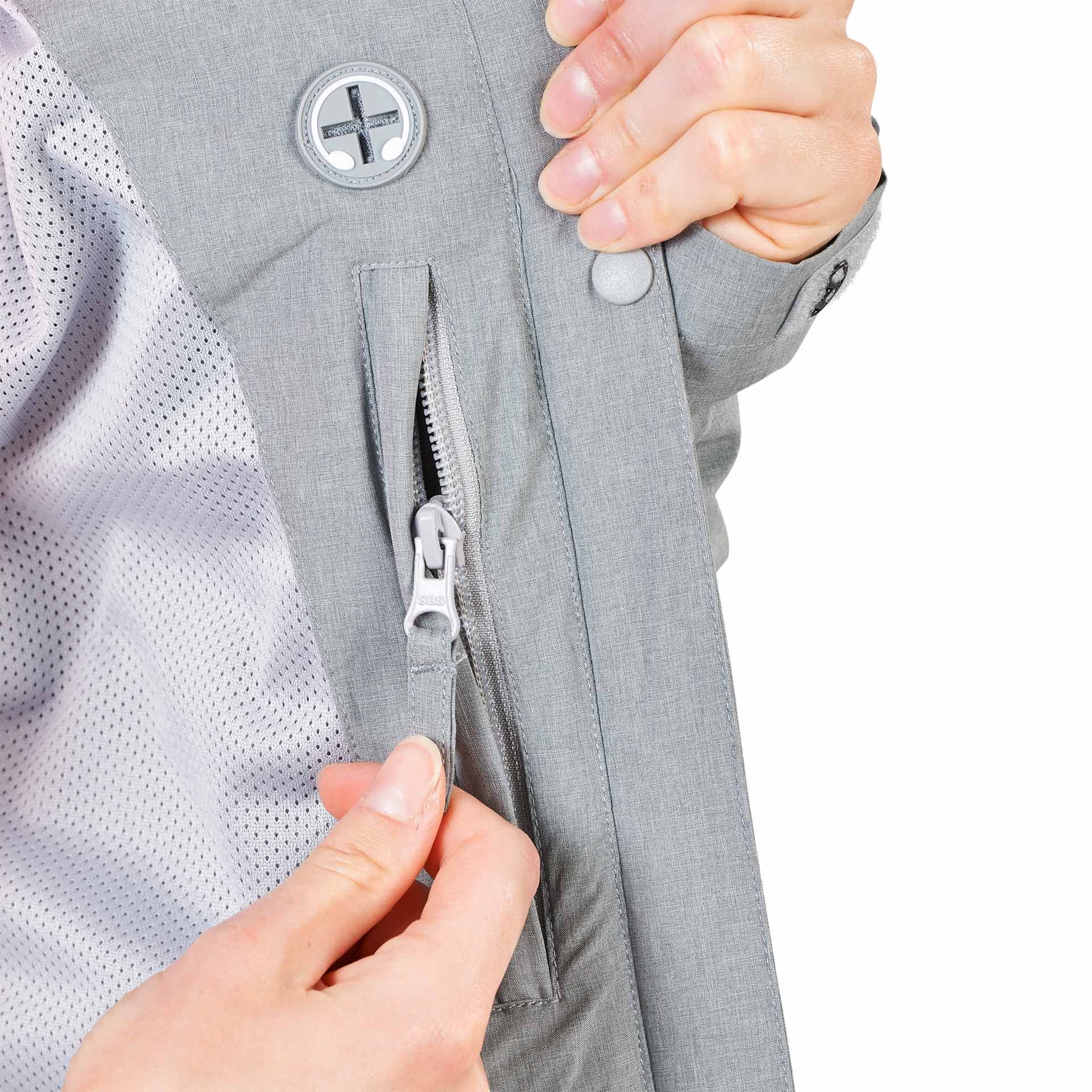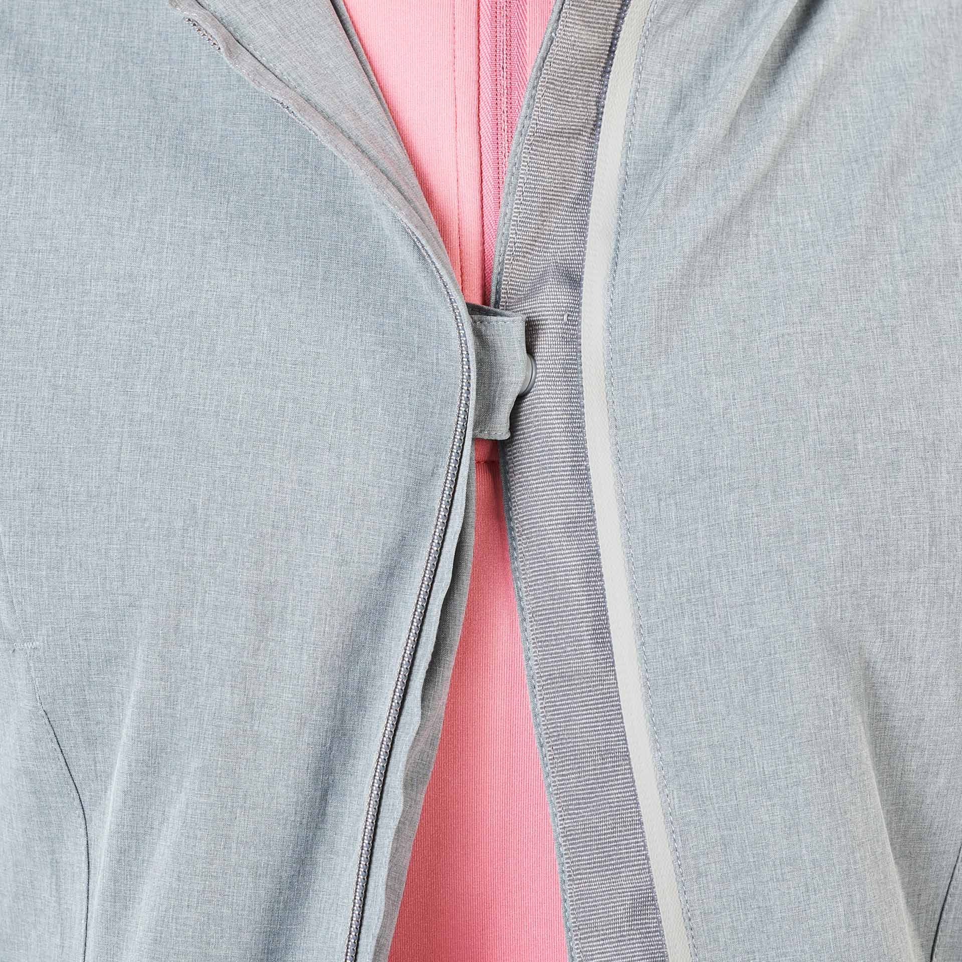 Cette veste offre de nombreuses fonctionnalités particulièrement adaptées aux cavalières : une fermeture éclair principal à double sens imperméable avec protection de menton et de selle pour éviter d'abîmer le cuir, des fermetures éclair de ventilation discrètes au niveau des coutures de la poitrine, doublées d'un filet de protection. Des passepoils réfléchissants sur les poches et dans la région lombaire, une capuche réglable et amovible qui peut être fixée à l'arrière pour l'équitation, et un bouton de pression particulier permettant de maintenir la veste en position même quand elle est ouverte. Avec trois poches zippées spacieuses, dont une poche intérieure avec une ouverture pour le passage des câbles de casque, des manches préformées et des extrémités de manches réglables par Velcro, et un cordon de serrage élastique réglable dans la région de la taille pour un ajustement individualisé, cette veste est parfaite pour l'équitation.