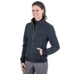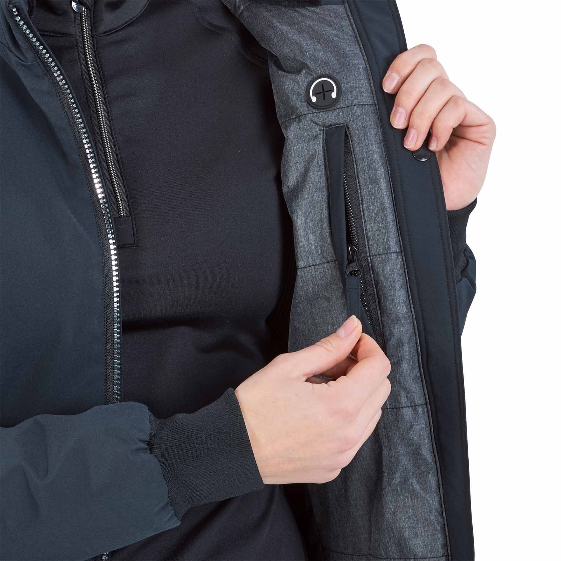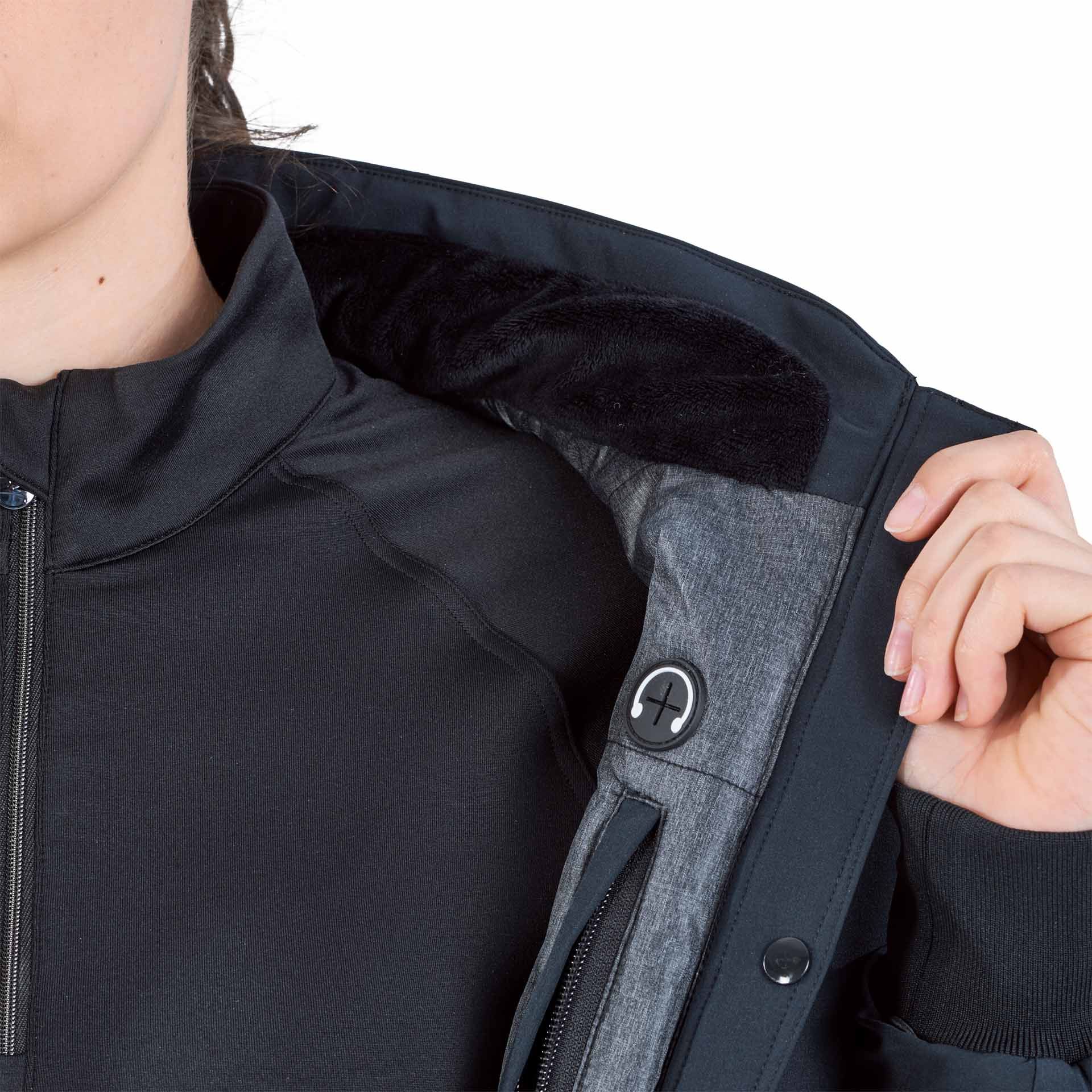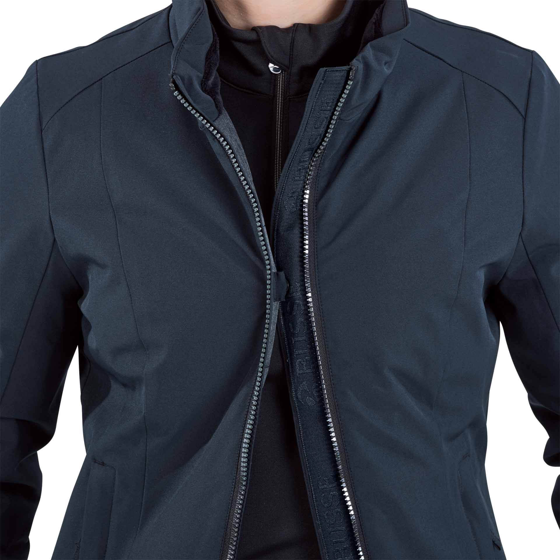 Conçue spécifiquement pour les cavalières, cette veste dispose d'une fermeture éclair principale à deux voies avec protection de selle pour préserver le cuir, de 3D AIR® DRY dans le haut du dos et sous les bras pour un climat de port toujours agréable, et de trois poches zippées spacieuses, dont une poche intérieure avec passe-câble pour les casques. Elle comprend également un bouton-pression spécial pour maintenir la veste en position même lorsqu'elle est ouverte, et des manches préformées pour un plus grand confort lorsque le bras est plié.
