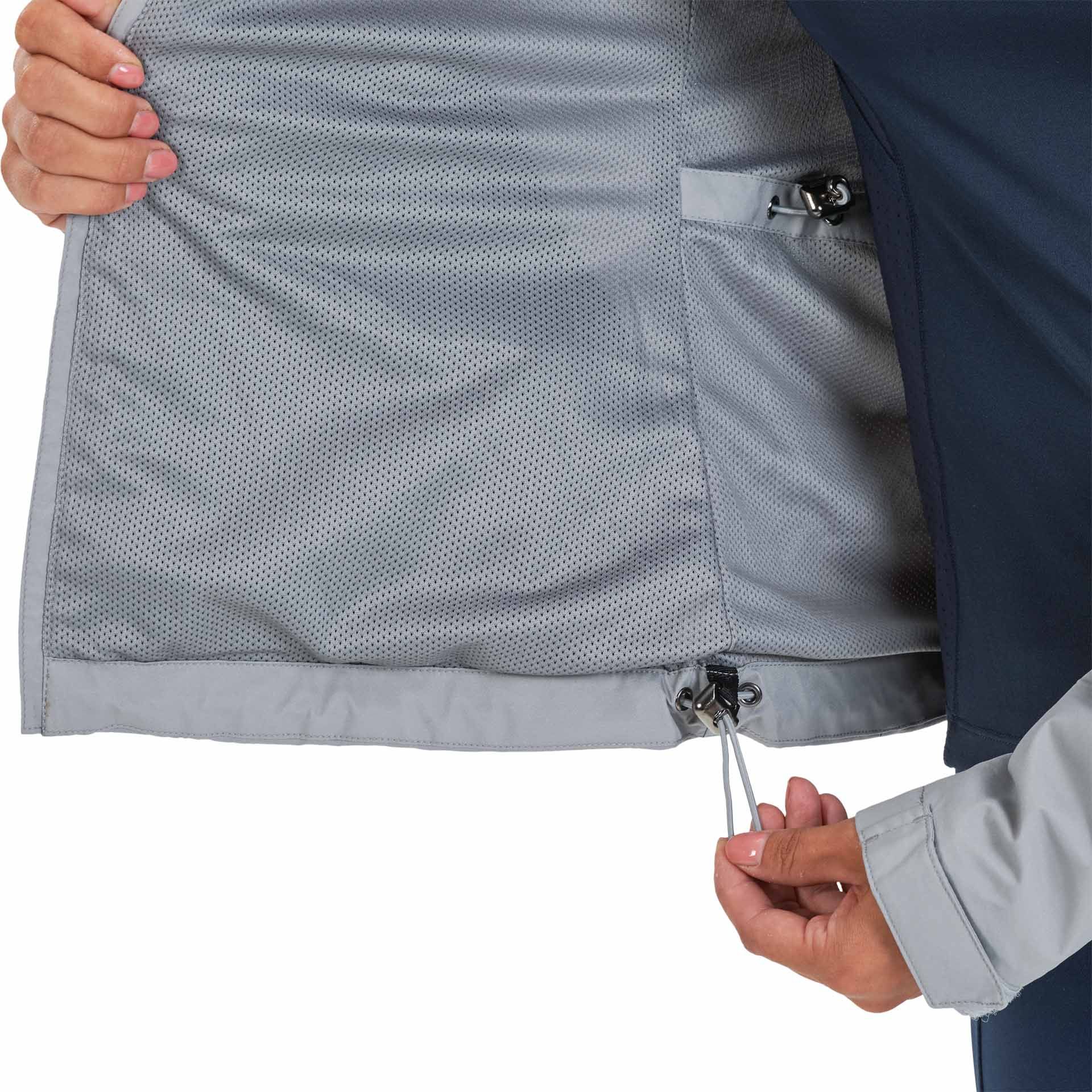 La Veste BUSSE MAILA 2 en 1 est dotée d'une fermeture éclair principale bidirectionnelle avec protège-menton et protège-selle, pour préserver le cuir. Elle dispose également d'un cordon de serrage élastique ajustable à l'intérieur, au niveau du dos de la taille et tout le long de l'ourlet, pour un ajustement individuel. La veste est également équipée de trois poches zippées spacieuses, y compris une poche intérieure avec un passage pour les câbles des écouteurs.