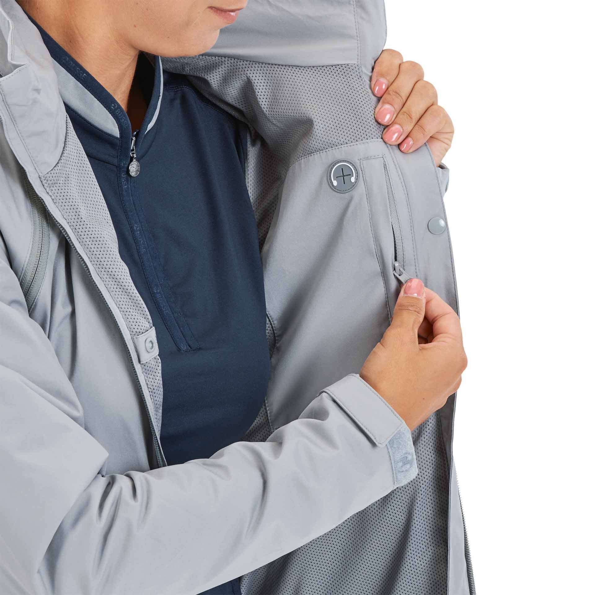 Elle est équipée de nombreuses fonctionnalités conçues spécifiquement pour les cavalières. Grâce à la pièce Zip-Adapt amovible en une seule partie, la veste peut être transformée en gilet en un clin d'œil, sans avoir à l'enlever. La pièce Zip-Adapt est connectée par deux fermetures éclair aux épaules, des boutons-pression dans la zone du col et un aimant dans la zone supérieure du dos. Un tricot à distance 3D AIR® DRY dans la zone supérieure du dos et une découpe d'aisselle exposée assurent un climat de port toujours agréable et bien ventilé.