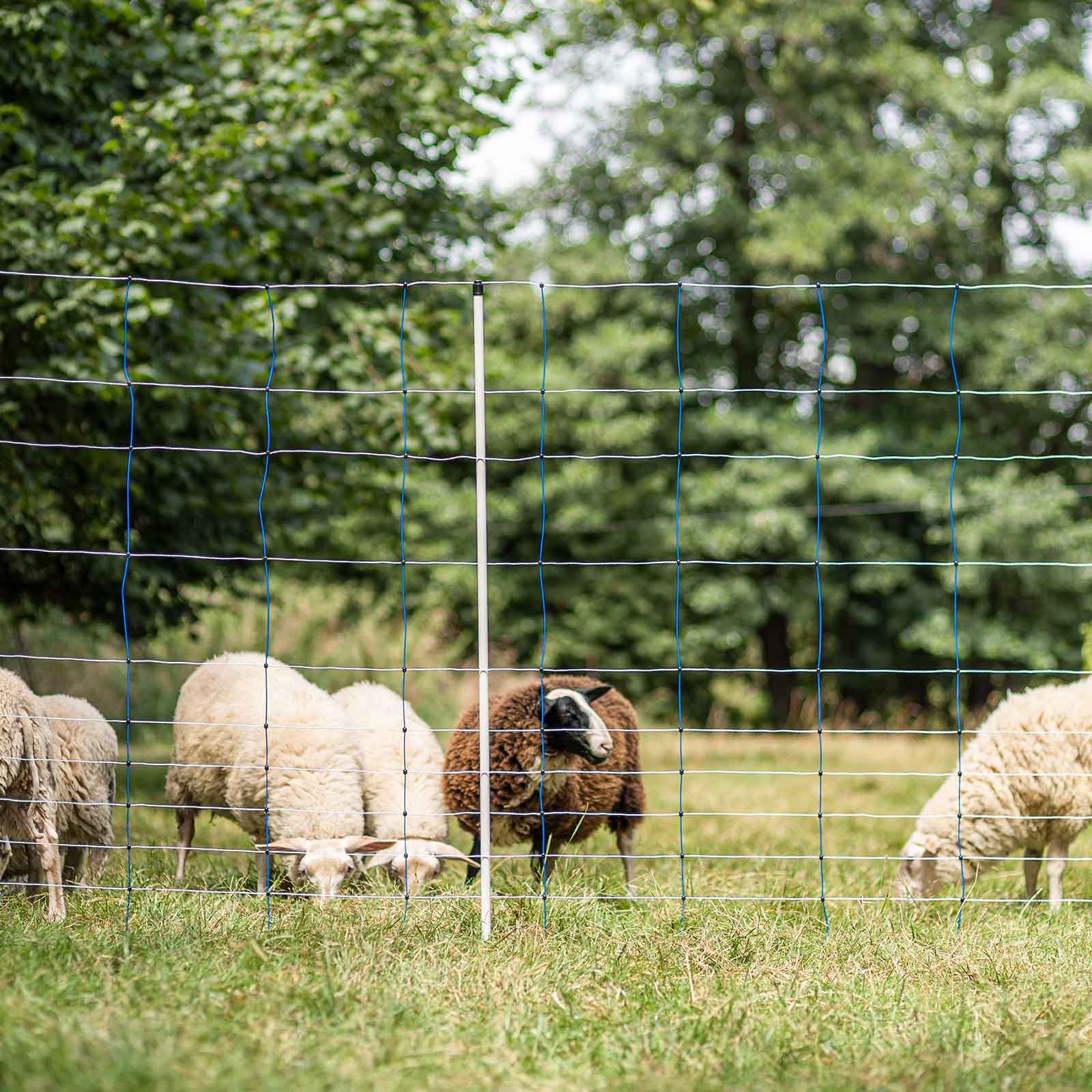 Doté de piquets en PVC extra fort d'un diamètre de 19 mm et d'une double pointe galvanisée, ce filet assure une résistance et une stabilité inégalées. Grâce à sa hauteur de 145 cm, il convient également très bien aux chevaux, poneys, ânes ou alpagas. Ses verticales éprouvées assurent une stabilité même dans les terrains vallonnés et inégaux.