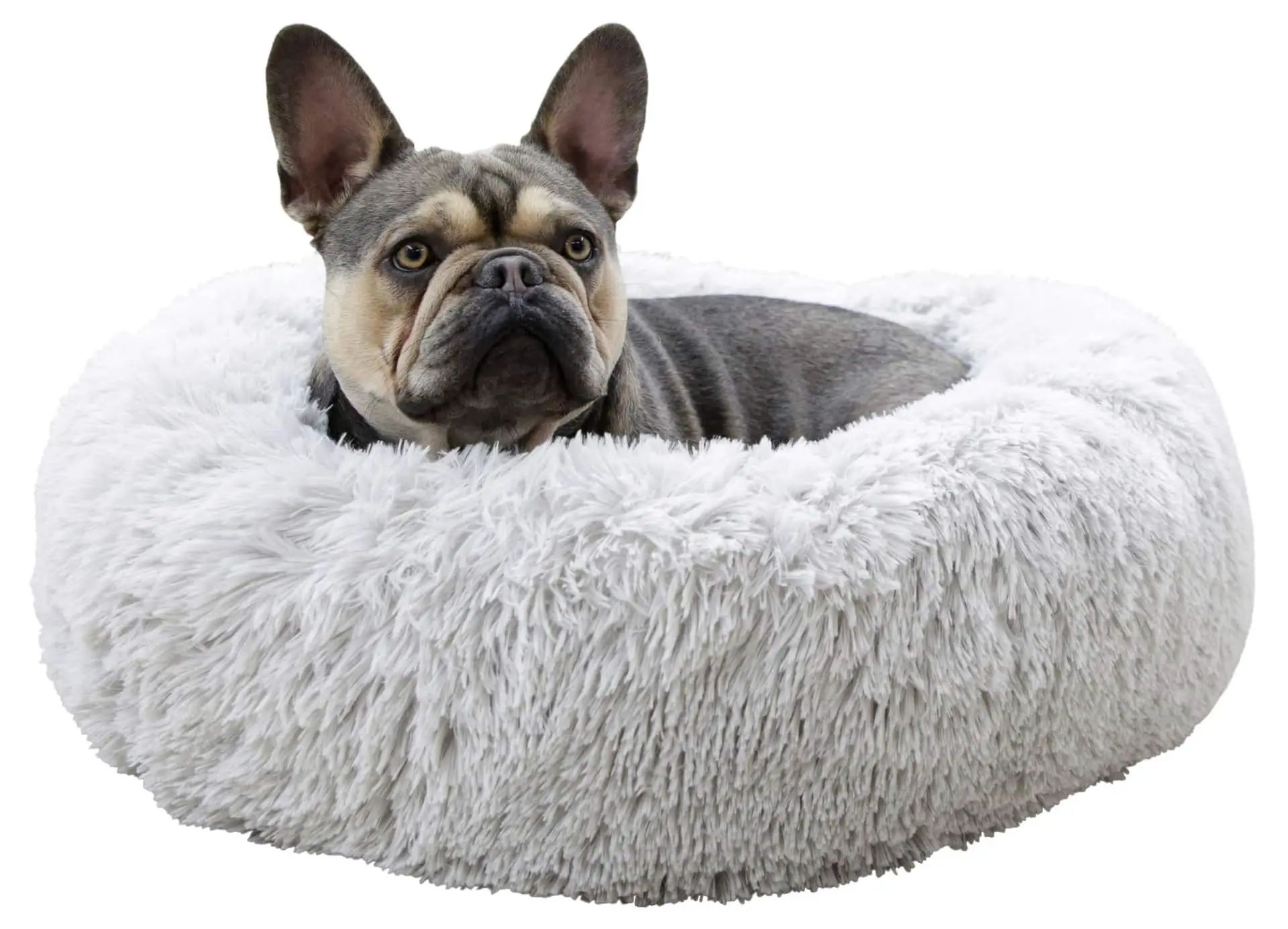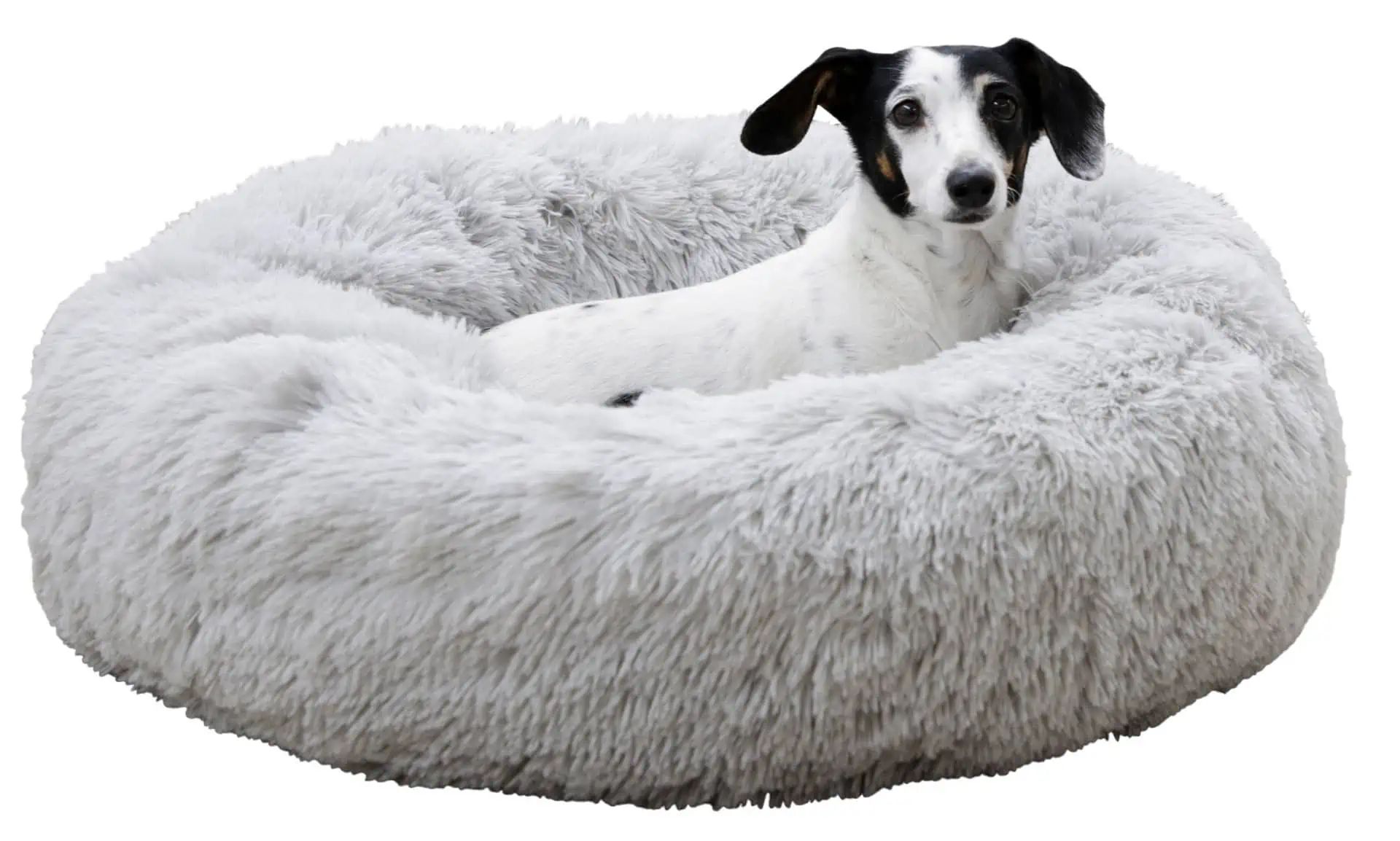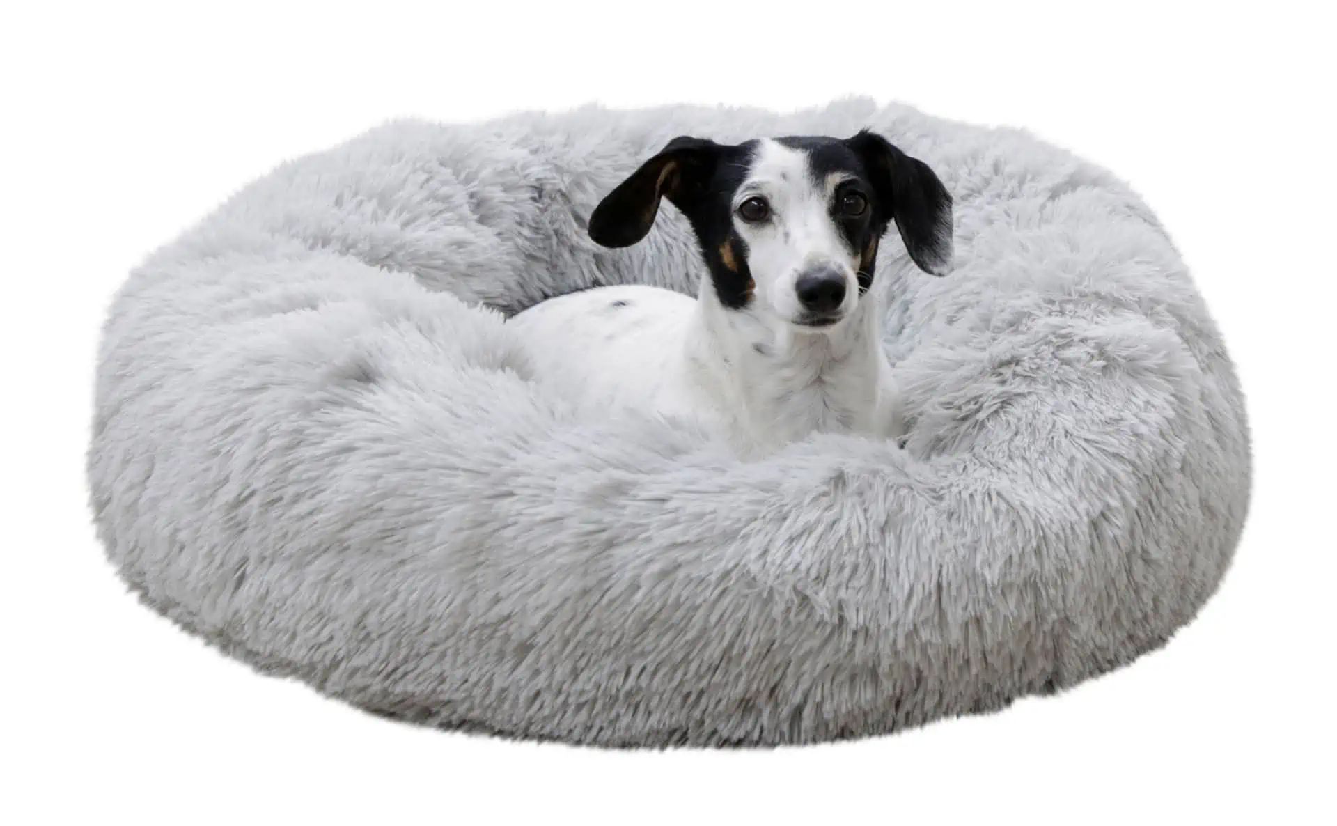 - fluffy, soft, round plush bed in doughnut shape for snuggling and feeling good