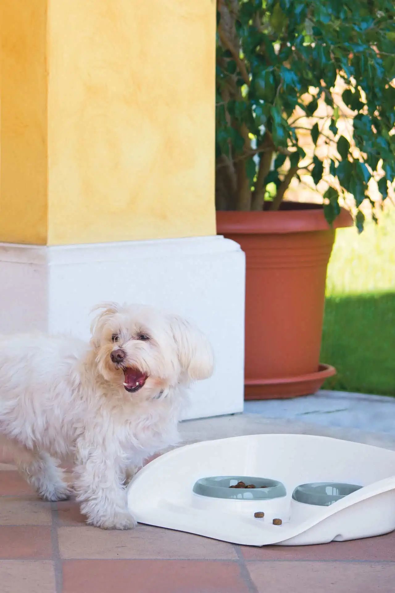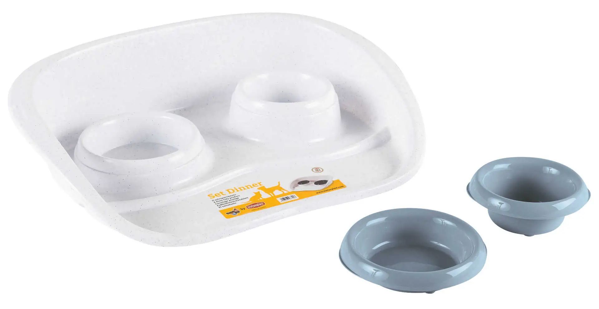 Bar d'alimentation avec 2 gamelles, bleu, 46 x 35 x 11 cm