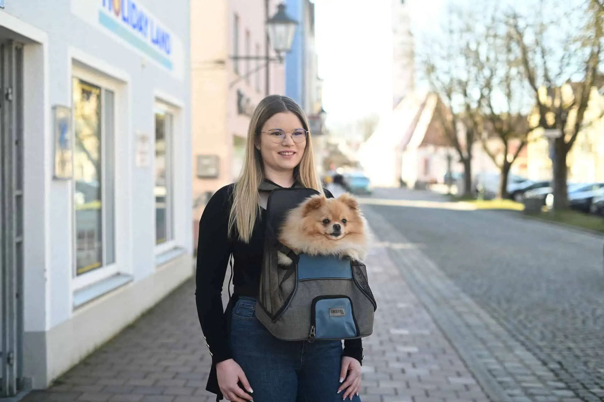 1 x Sac de transport frontal pour chiens Vacation 31x24x38cm, gris/bleu