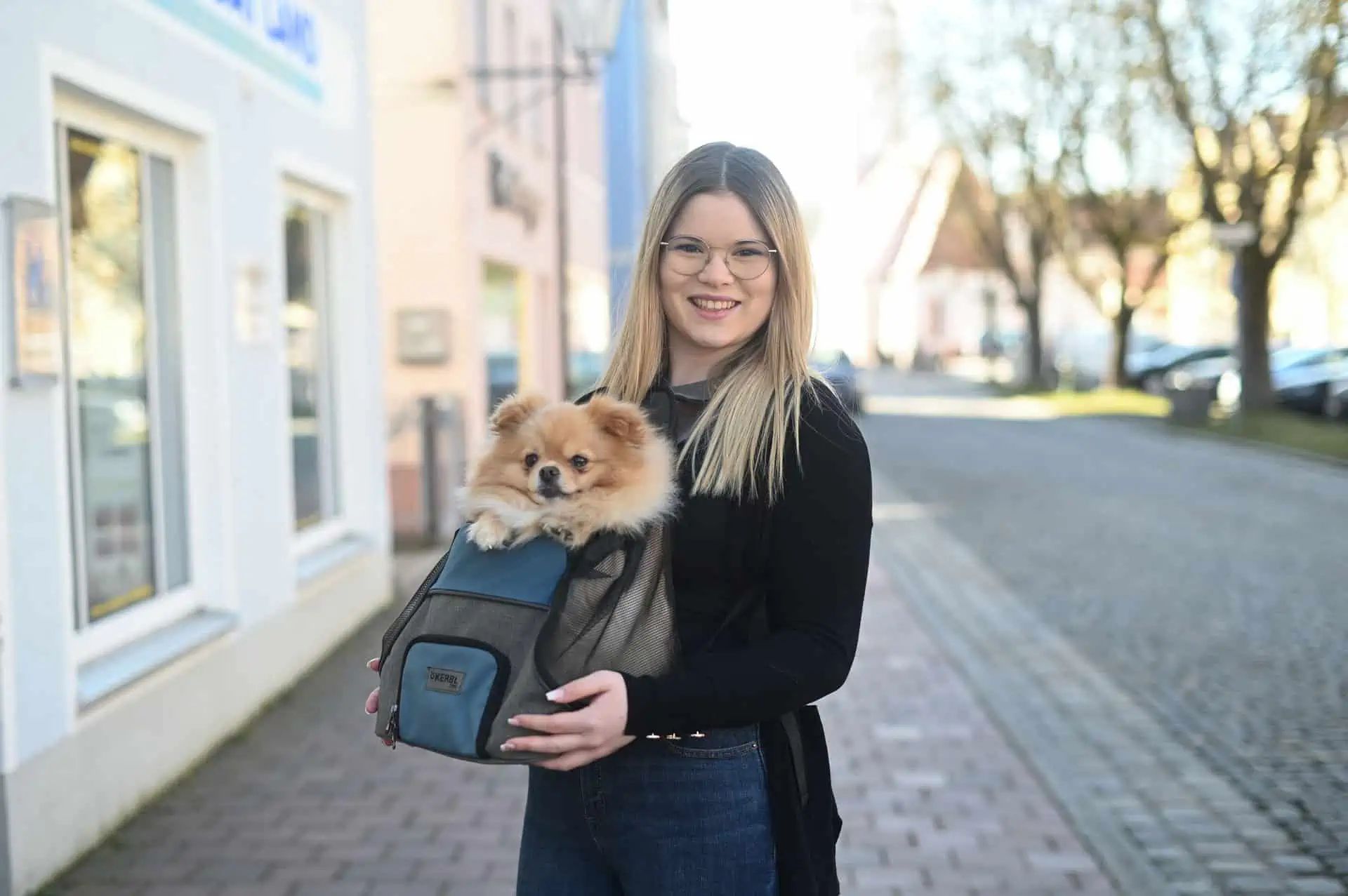 Sac de transport frontal pour chiens Vacation 31x24x38cm, gris/bleu : Pour des aventures sans limites avec votre ami à quatre pattes